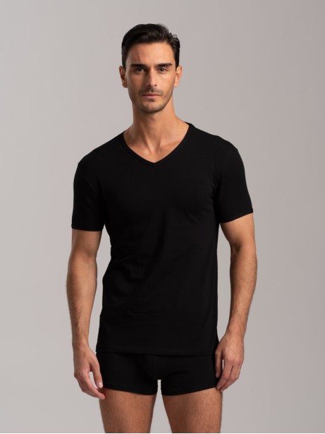 Maglietta intima uomo scollo a V, realizzata in cotone jersey elasticizzato tinta unita