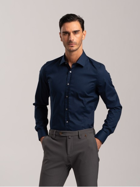 Camicia uomo tinta unita super slim fit con doppia pince e collo piccolo, realizzata in cotone popeline stretch