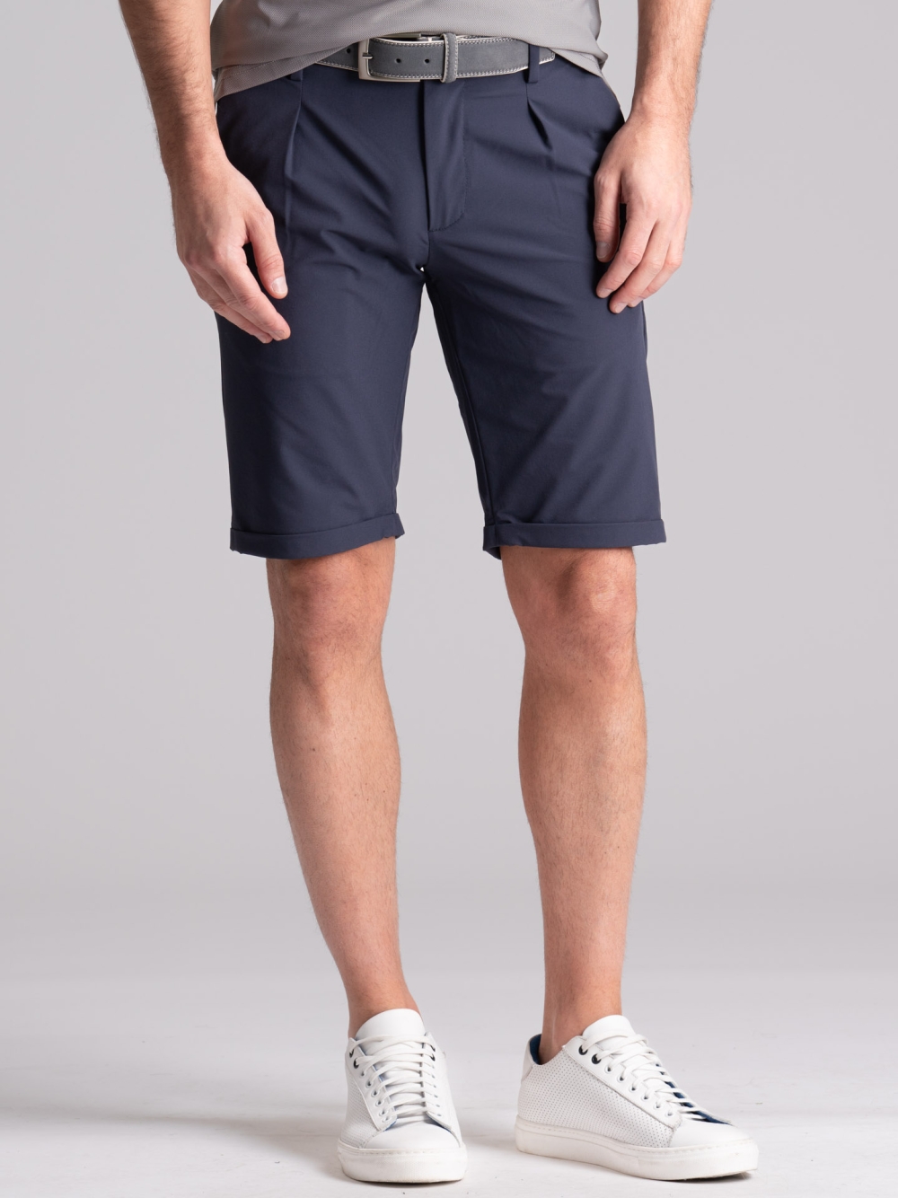Bermuda uomo modello chino con pinces e risvolto dal taglio più formale, realizzato in tessuto TECNO super performante: traspirante, stretch, no pieghe e no stiro. Caratterizzato da sottopancia e tasche dietro con doppio filetto, all’interno questo bermuda è perfettamente rifinito con bordature in tessuto twill color sabbia dal taglio semi sartoriale, in tono con la salpa posteriore. Perfetto per vestire con classe anche durante le calde giornate estive. Questo bermuda uomo TECNO è disponibile nelle varianti colore verde militare, blu e grigio medio.
