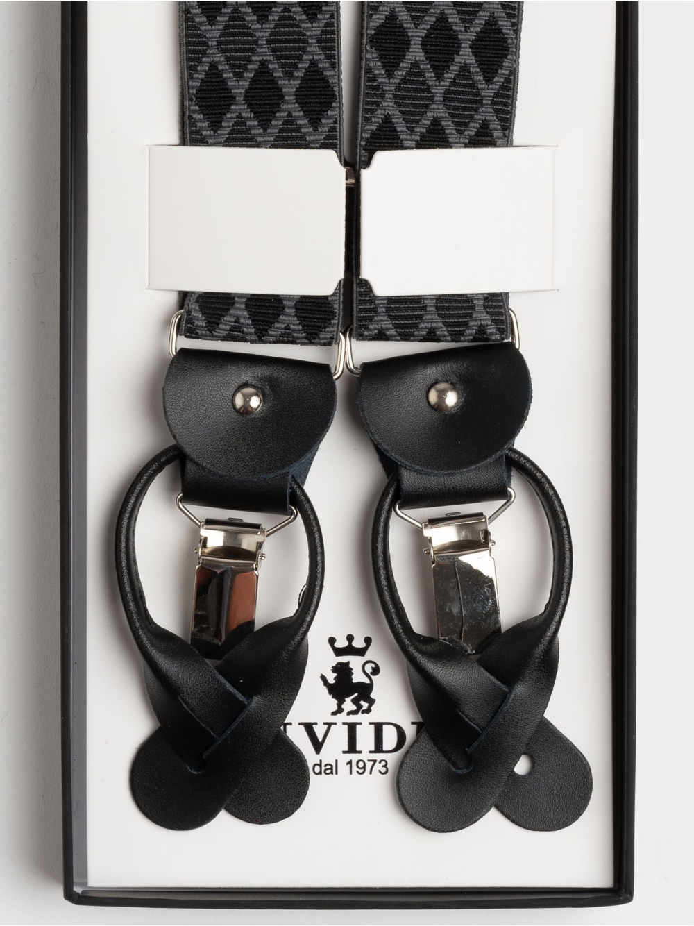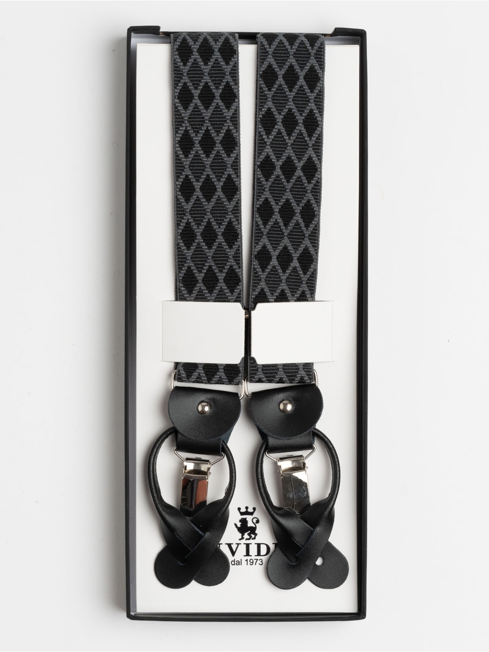 Bretella regular disegno rombi con clips e occhielli per abbottonatura pantalone