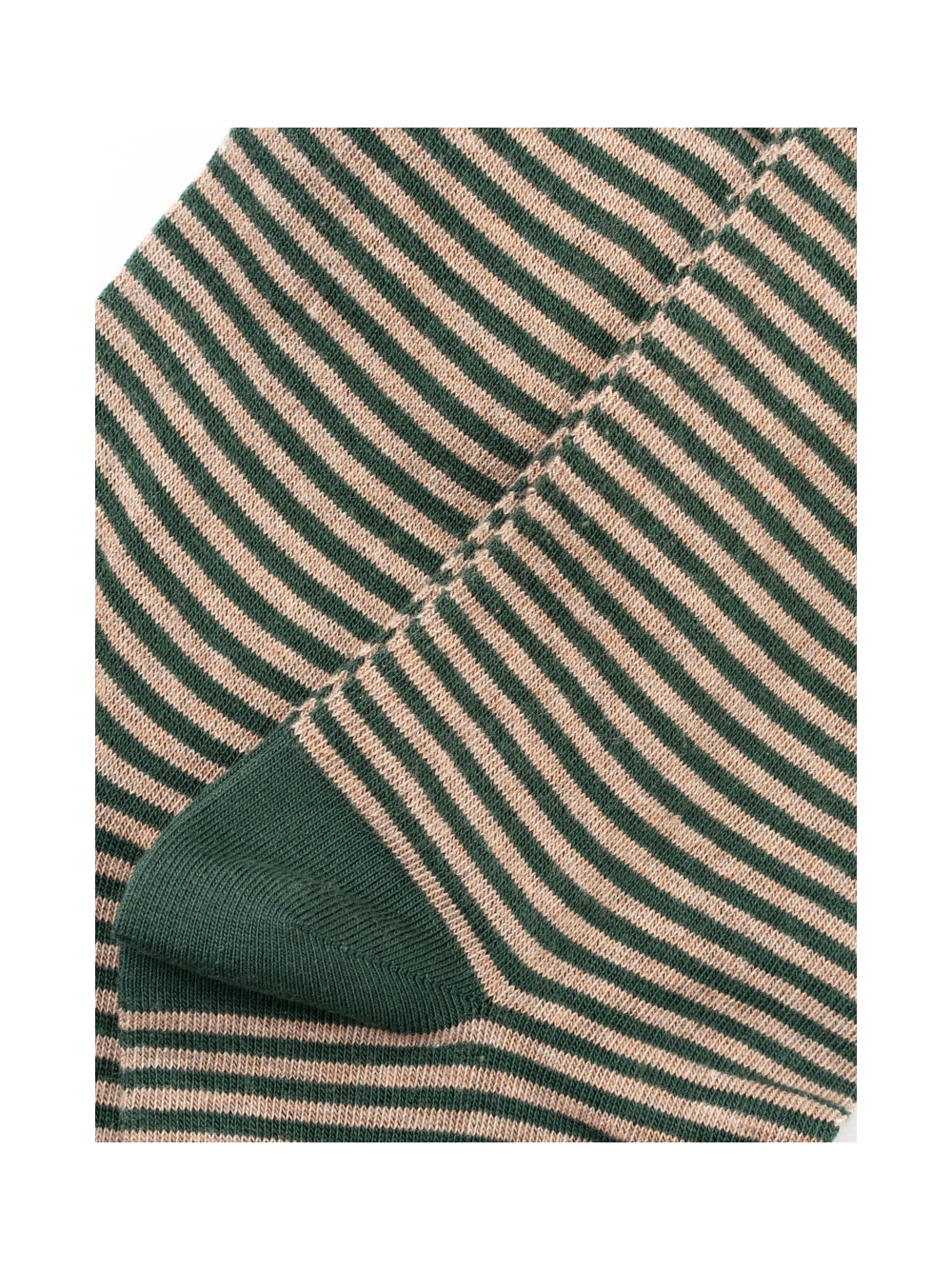 Calza uomo con fantasia microriga dall’aspetto classico, nella variante color verde-tortora e blu-grigio, disponibile in due lunghezze, corta e lunga.