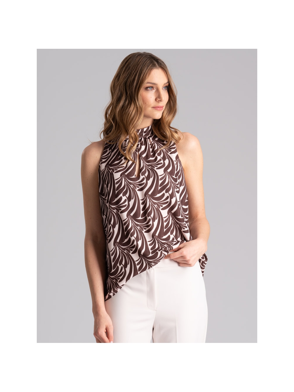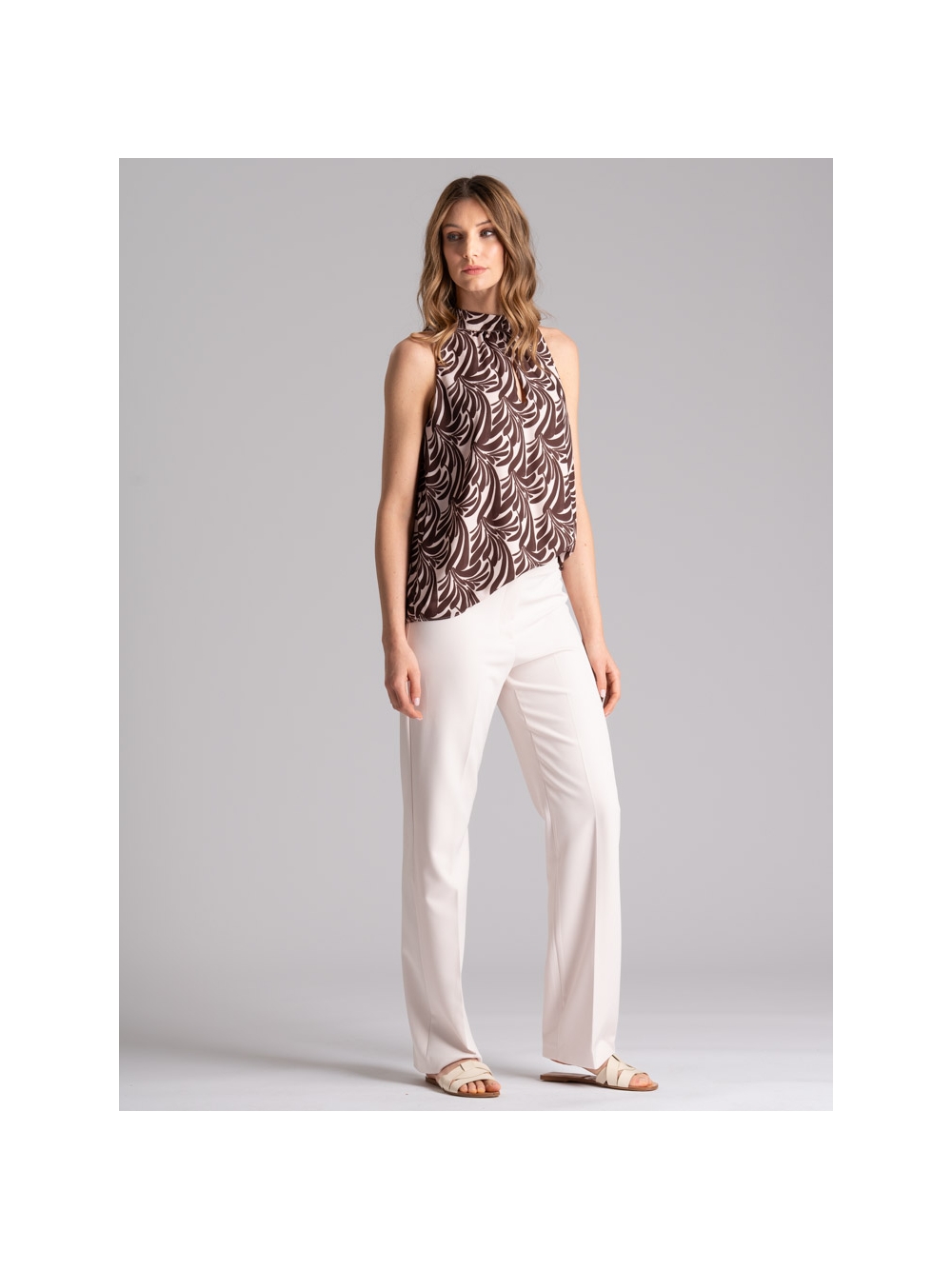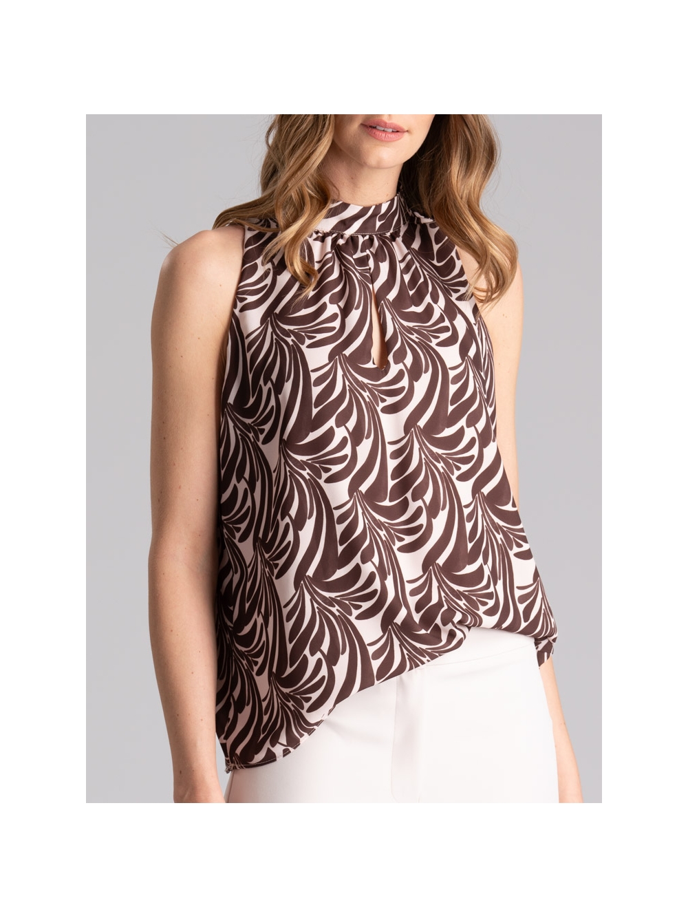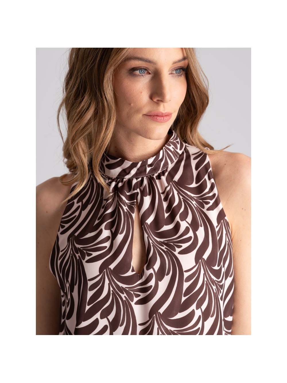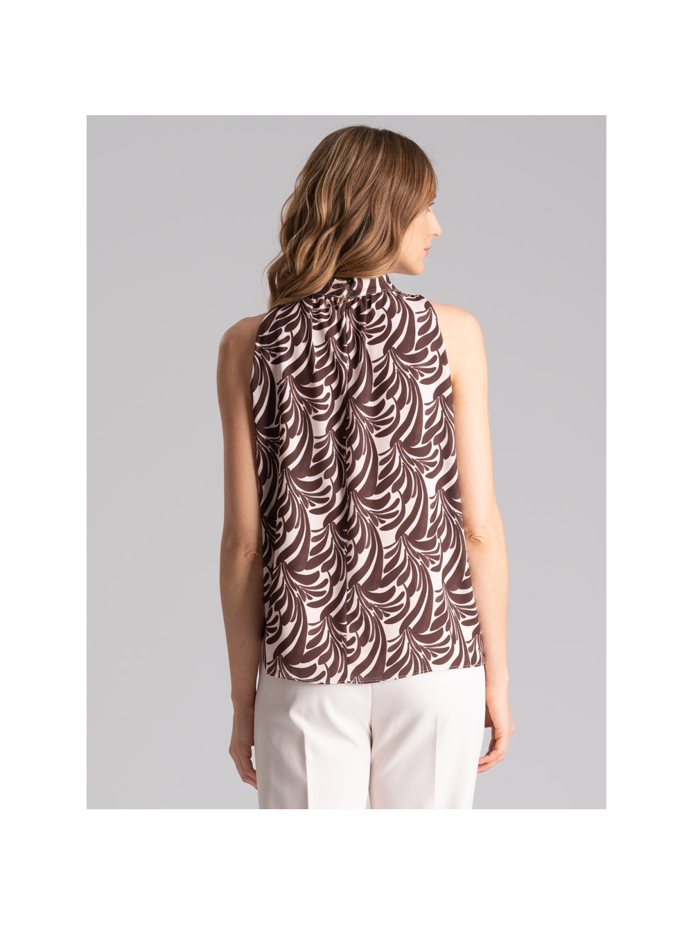 Camicia donna in doppia georgette con stampa floreale di ispirazione etnica, caratterizzata dall' elastico sul collo, i polsi della mezza manica e sul fondo per portarla rimborsata o scesa.