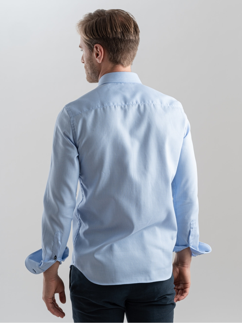 Camicia uomo tinta unita azzurra tessuto armaturato
