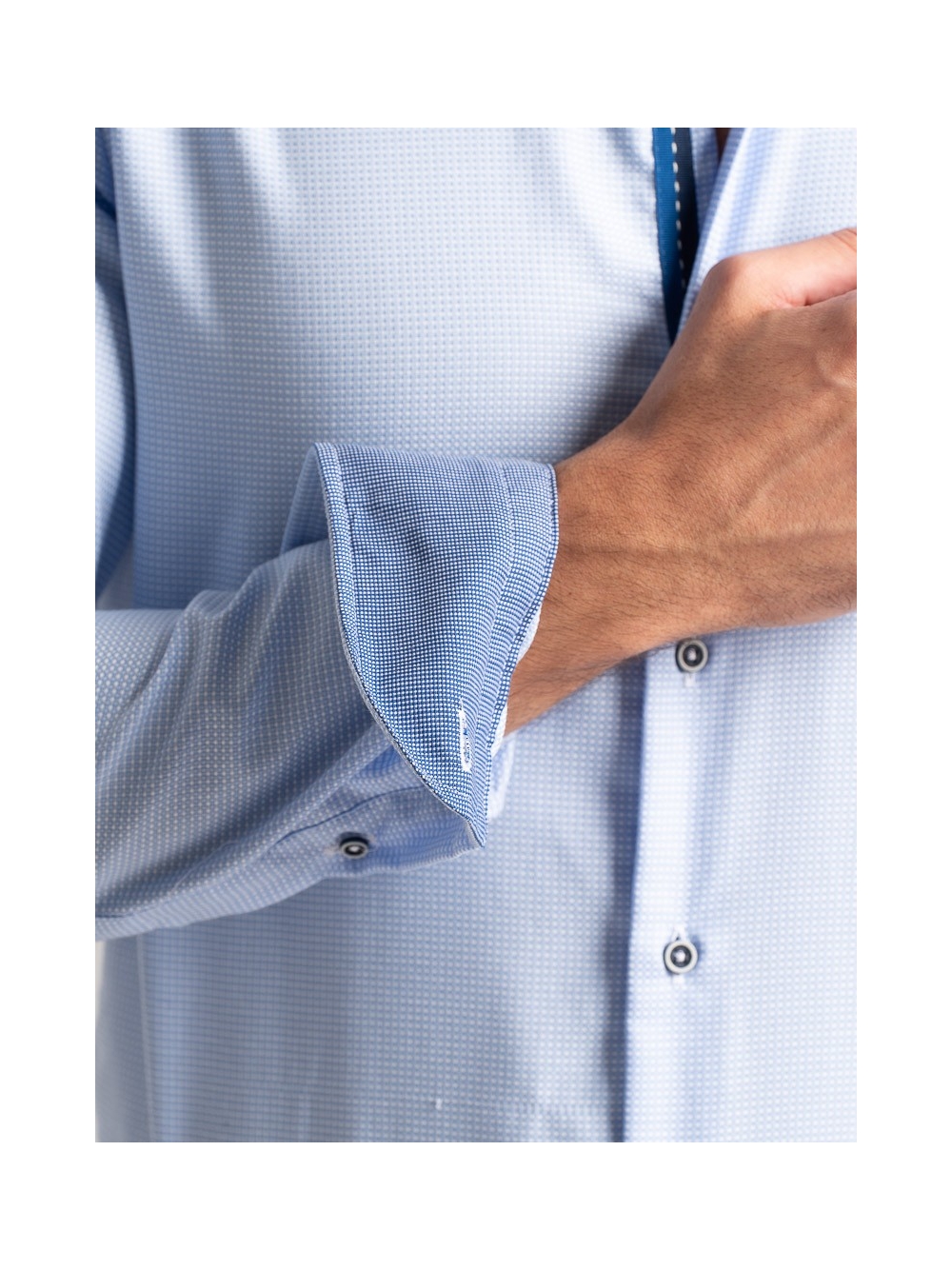 Camicia uomo tinta unita tessuto armaturato con inserto collo polsi