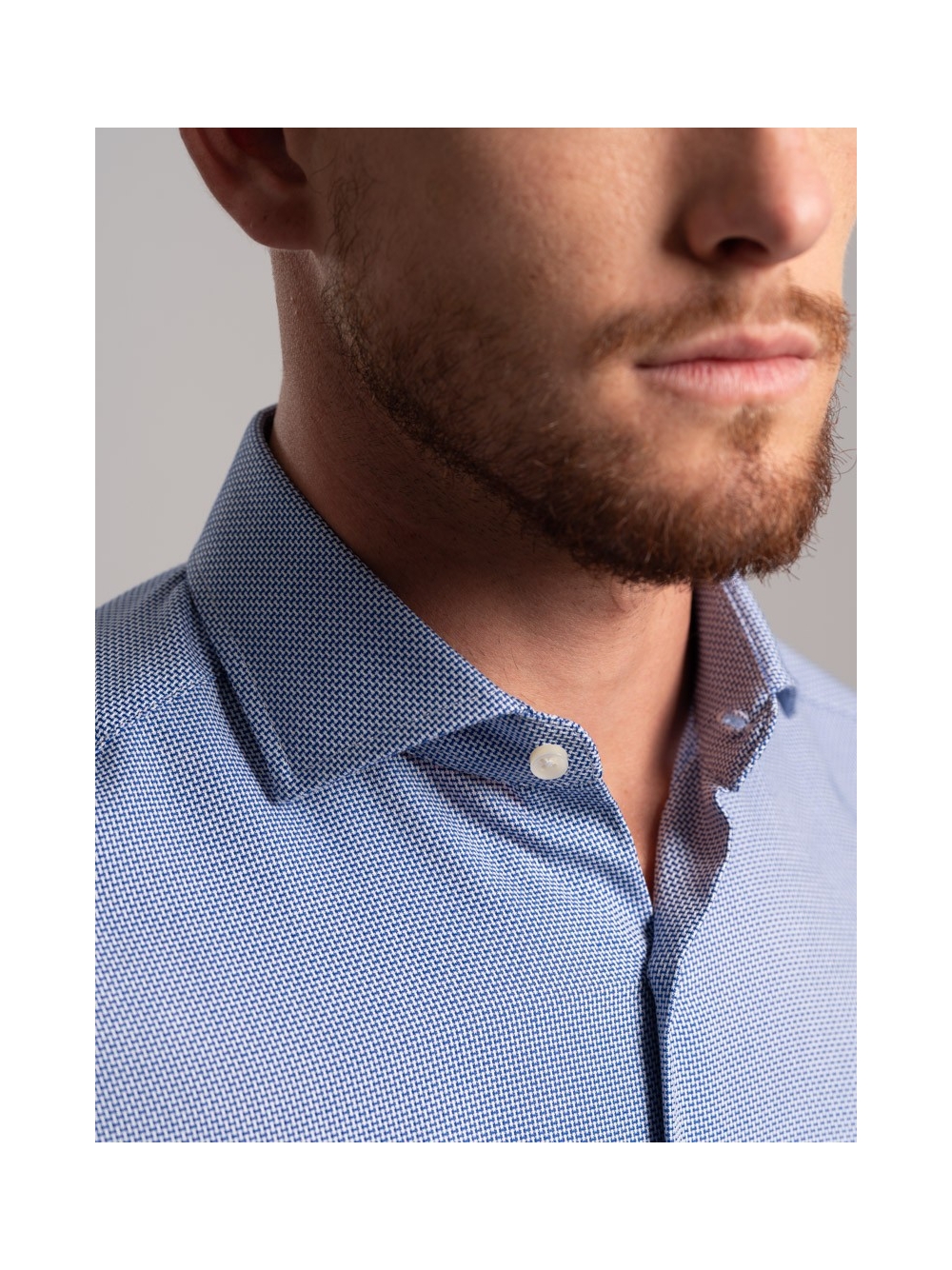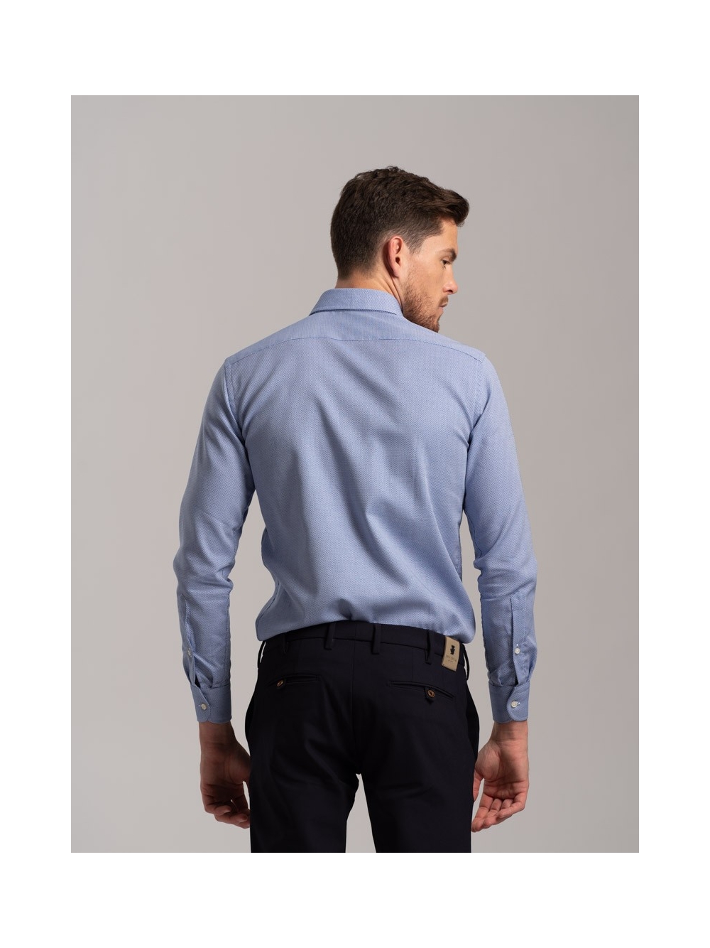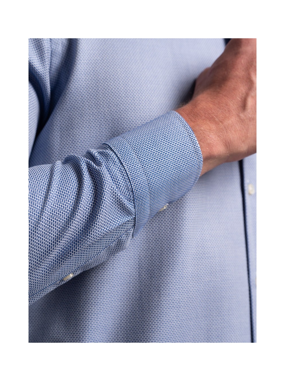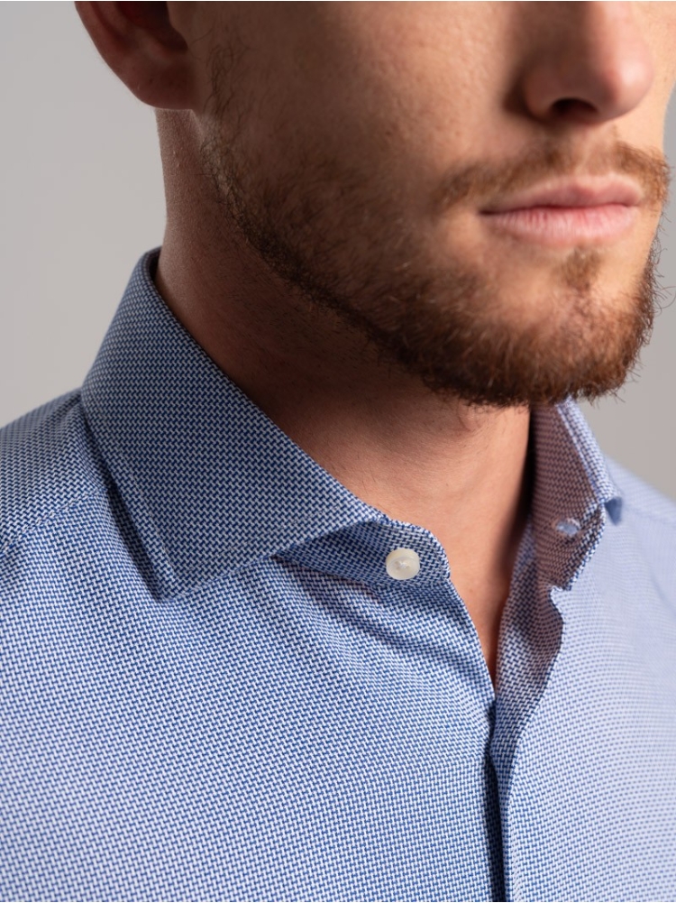 Camicia uomo micro armatura bicolor, collo semifrancese realizzata in tesuto armaturato blu bianco.