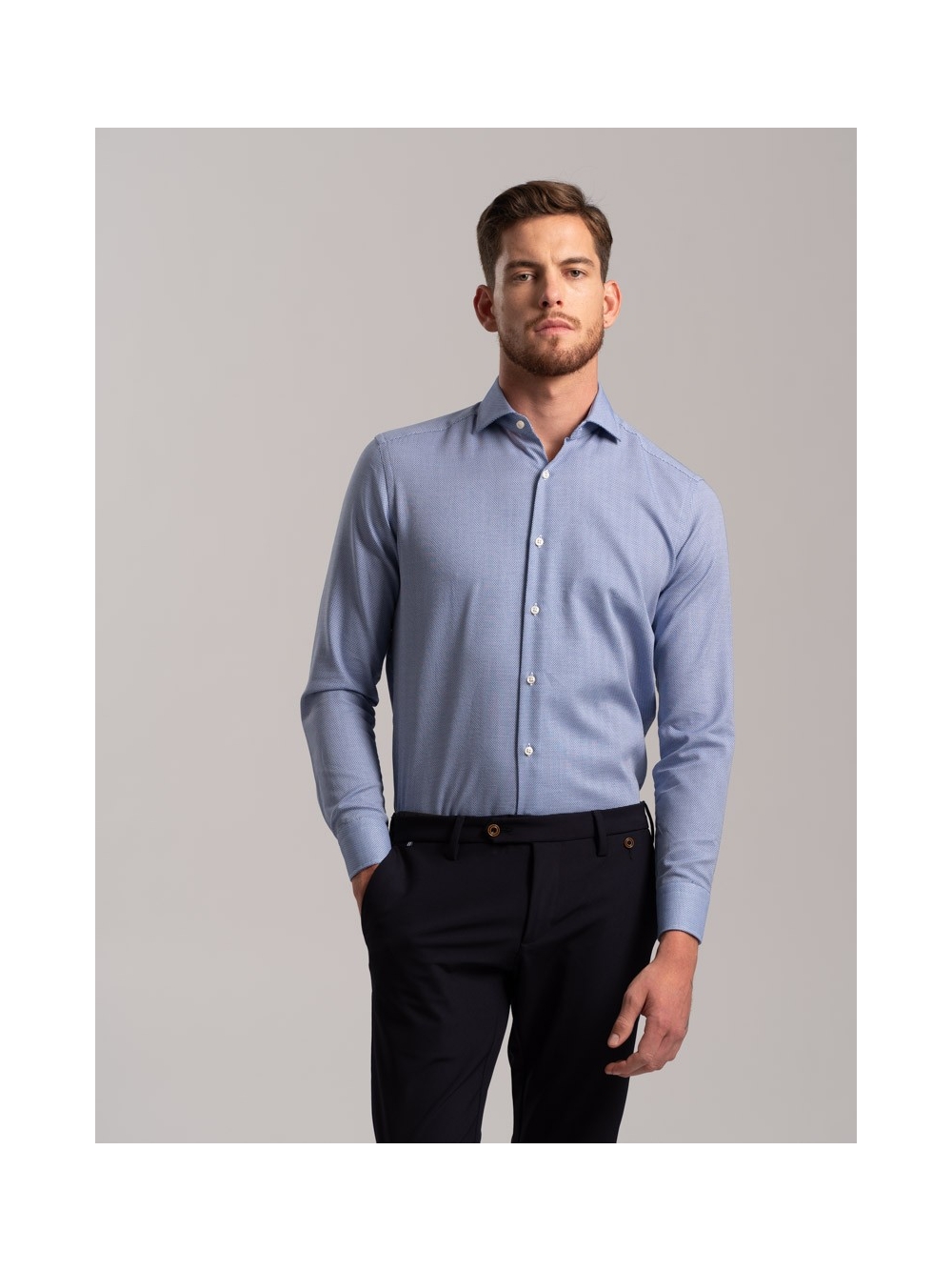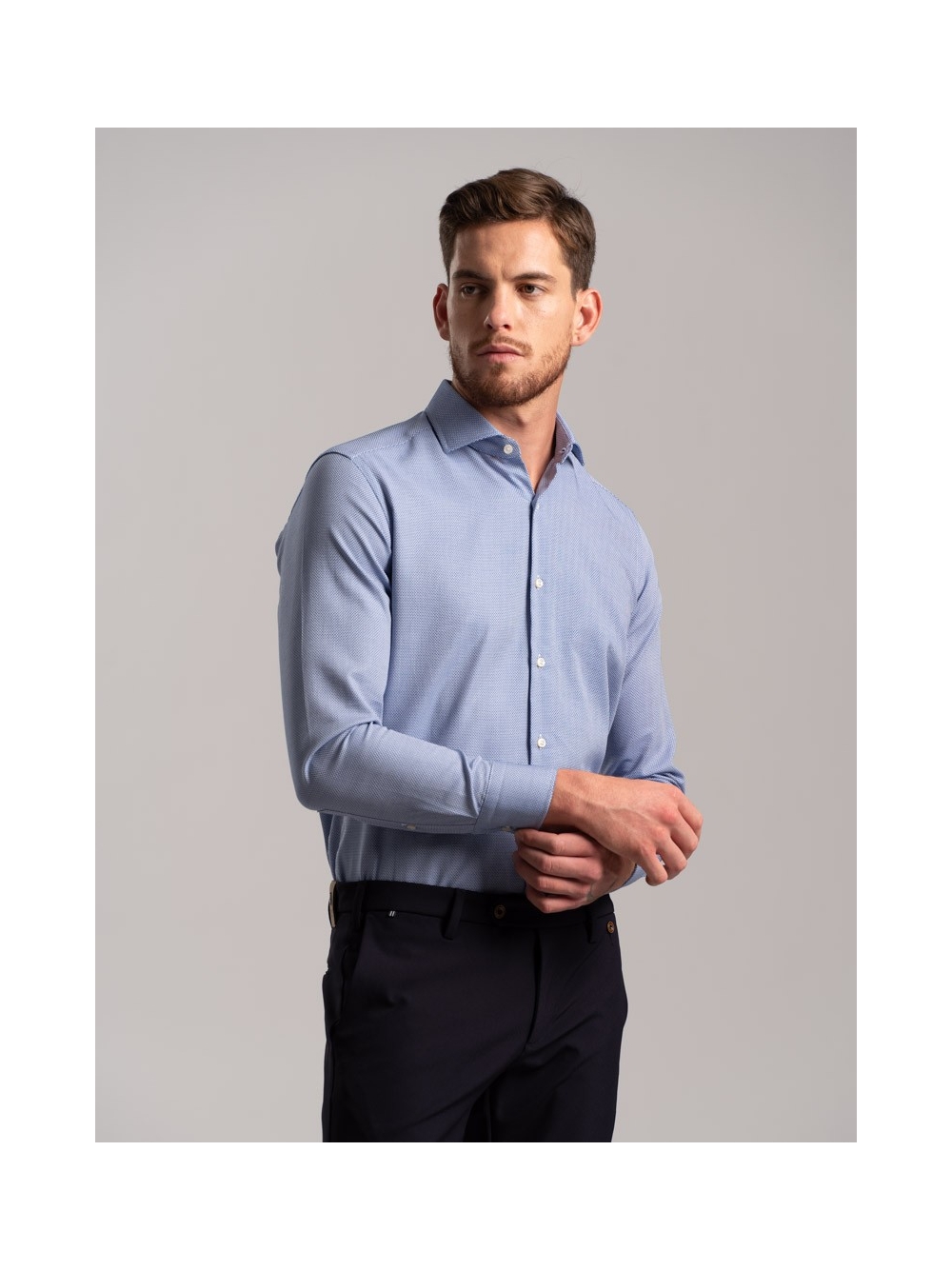 Camicia uomo in tessuto armaturato collo semifrancese