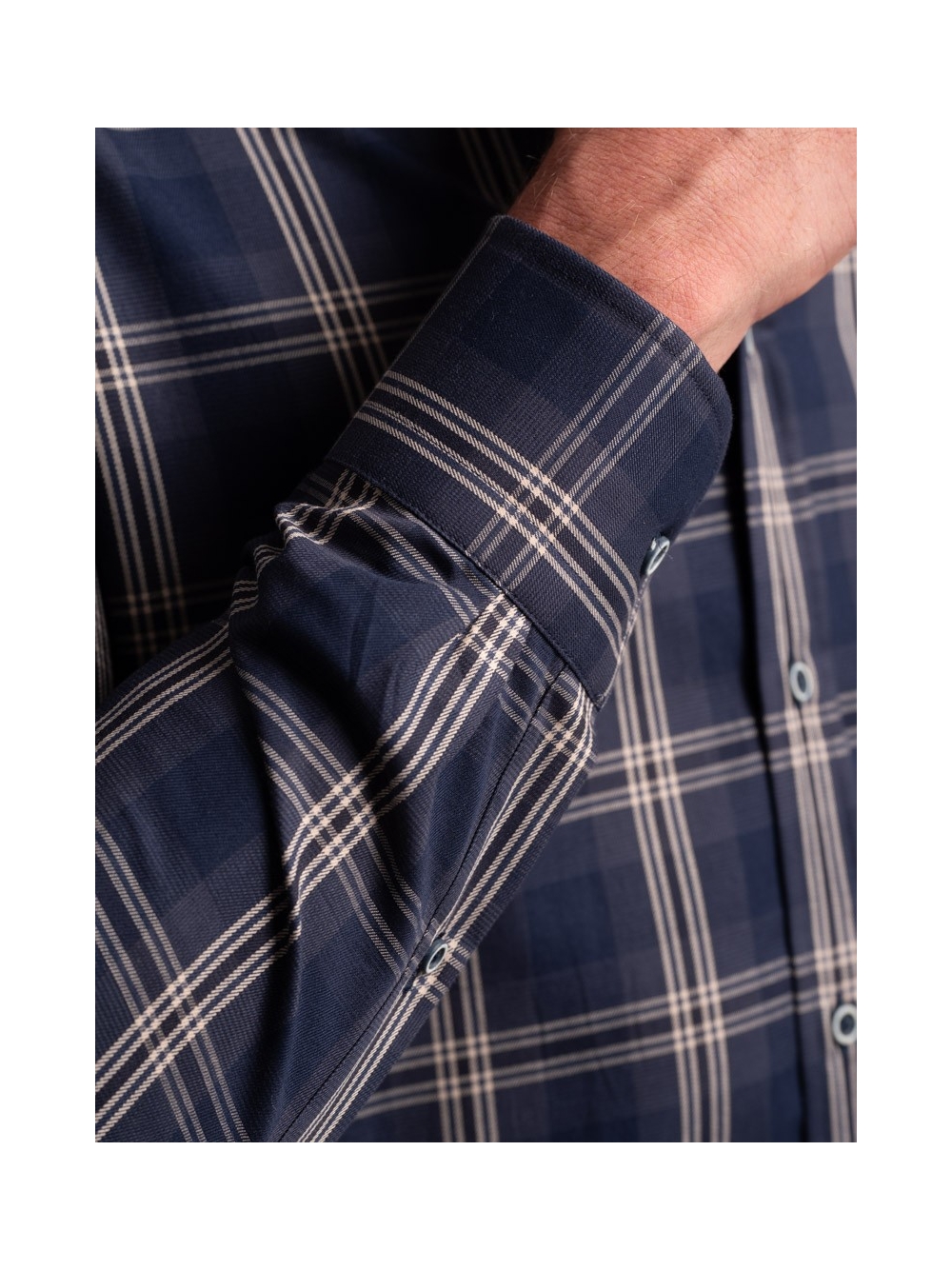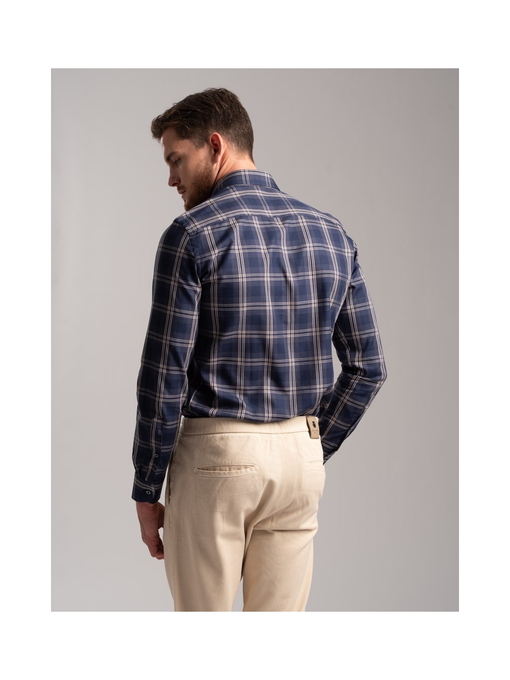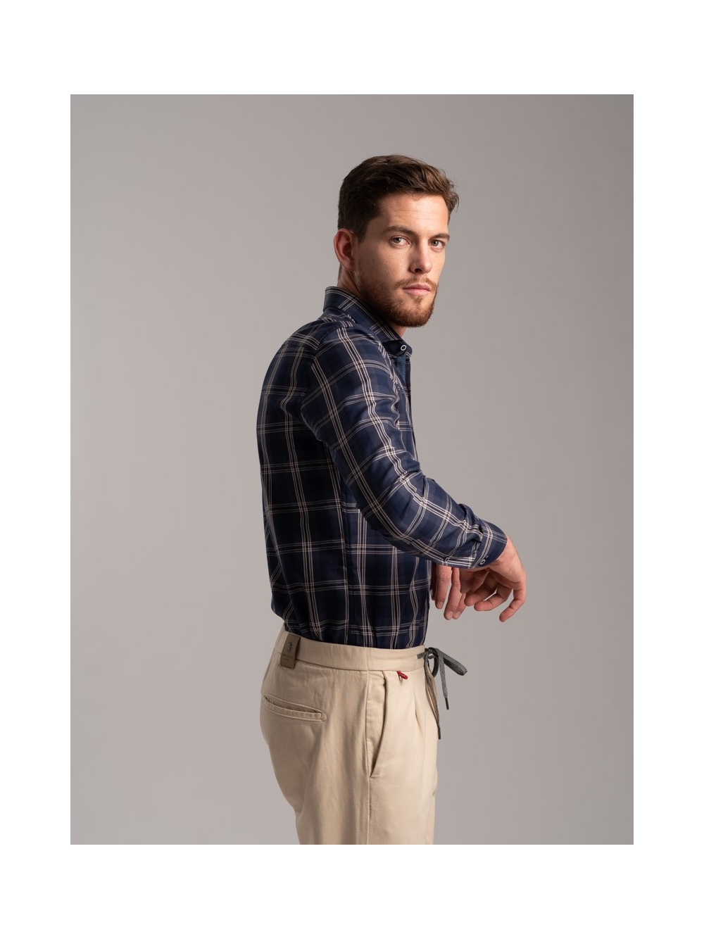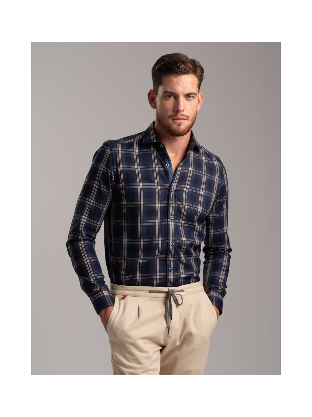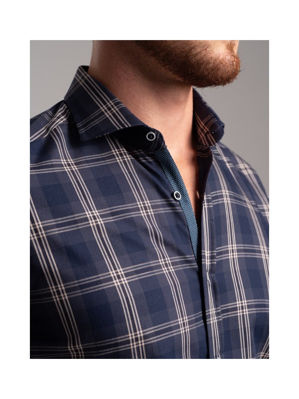 Camicia uomo madras bicolor in tessuto twill collo semi francese