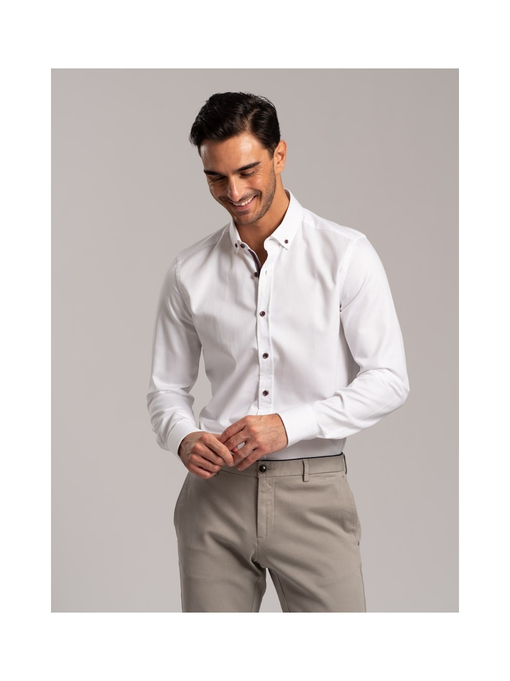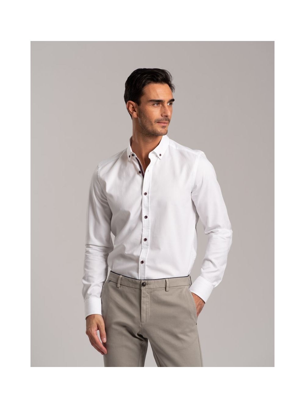 Camicia uomo tinta unita in tessuto armaturato collo botton down