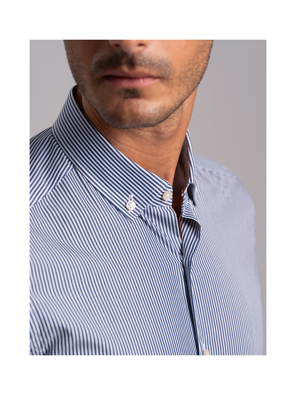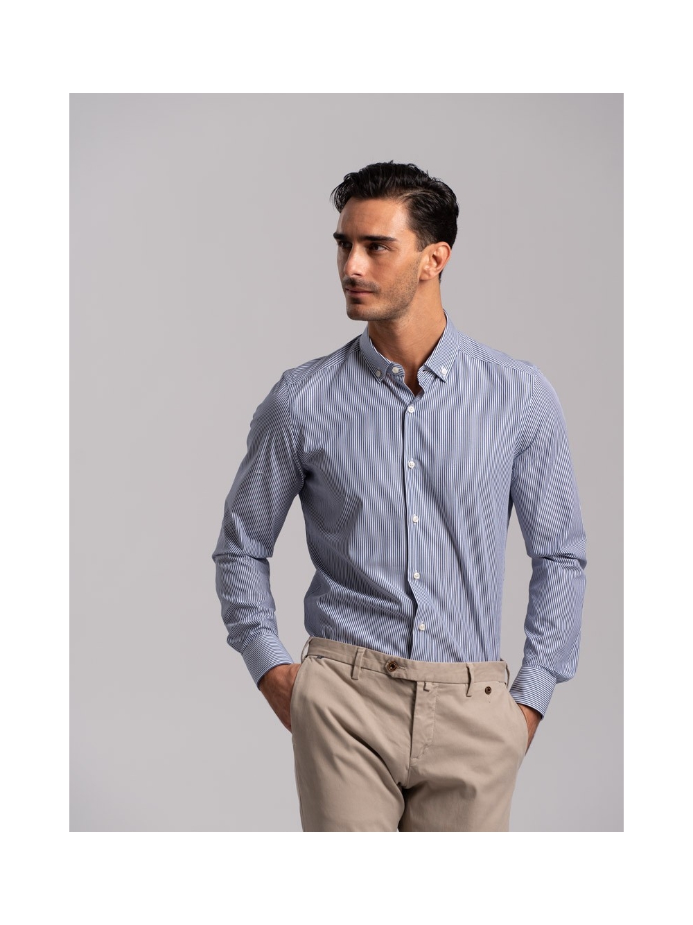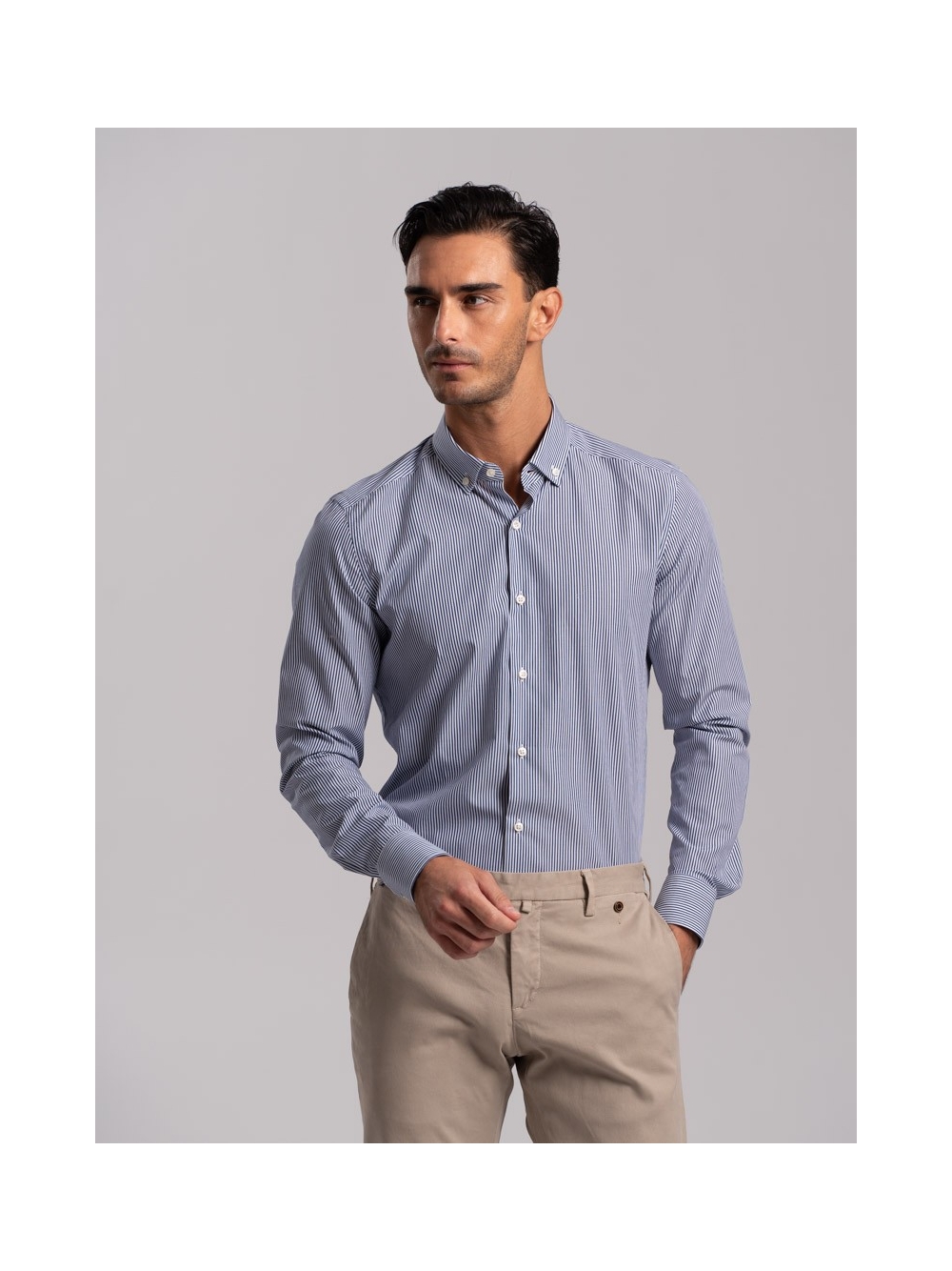 Camicia uomo rigata in tessuto popeline collo botton down