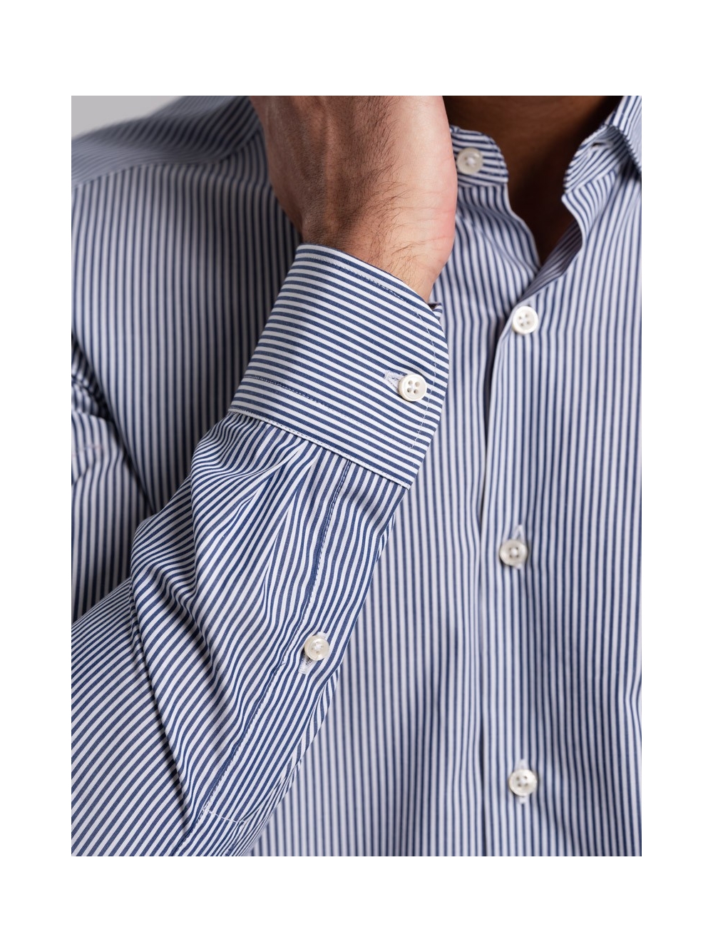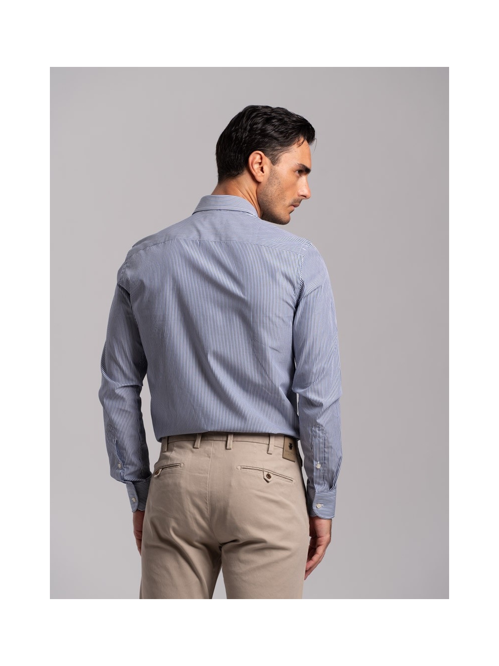 Camicia uomo rigata bastoncino pari pari in tessuto popeline, collo botton down