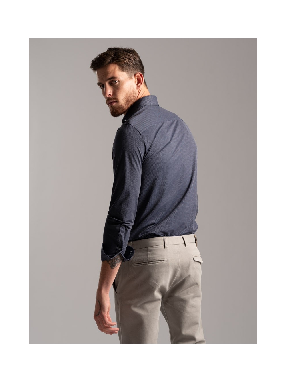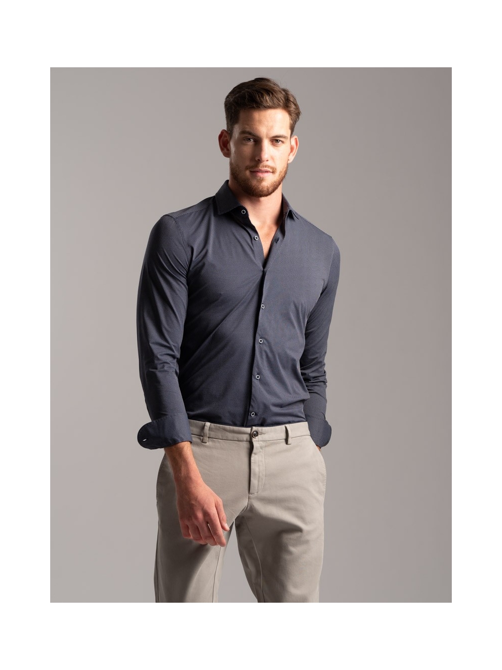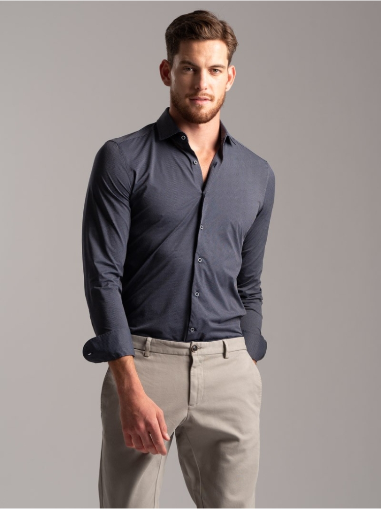 Camicia uomo micro fantasia in tessuto TECNO collo semi francese