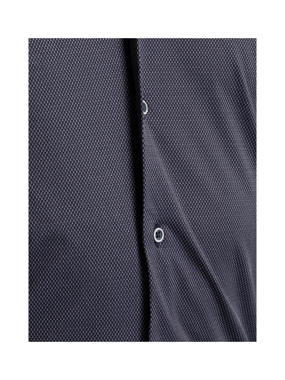 Camicia uomo micro fantasia rigata realizzata in tessuto TECNO, collo semi francese. Bottoni bicolor blu bianco.