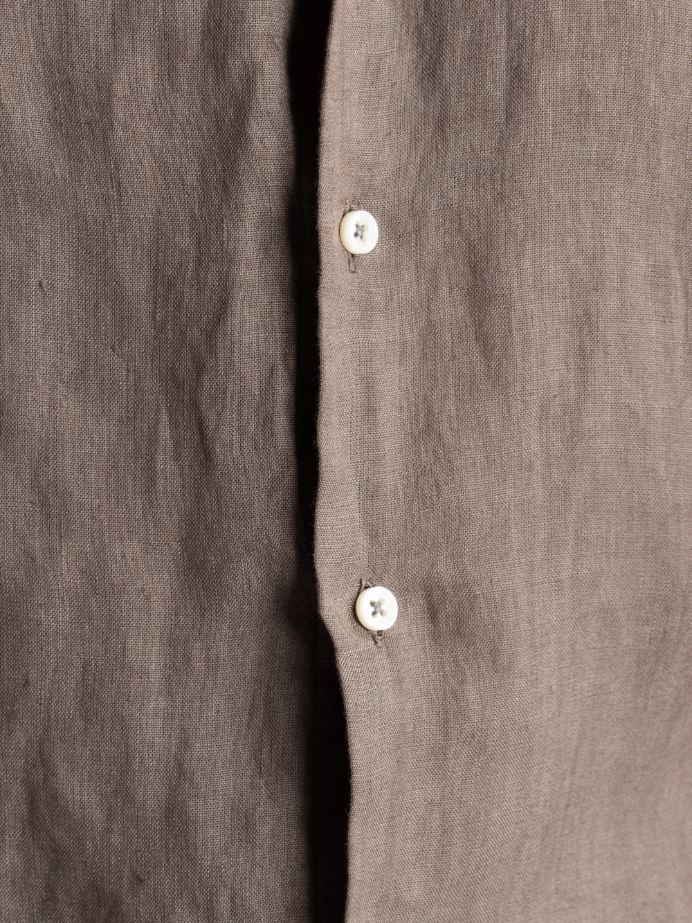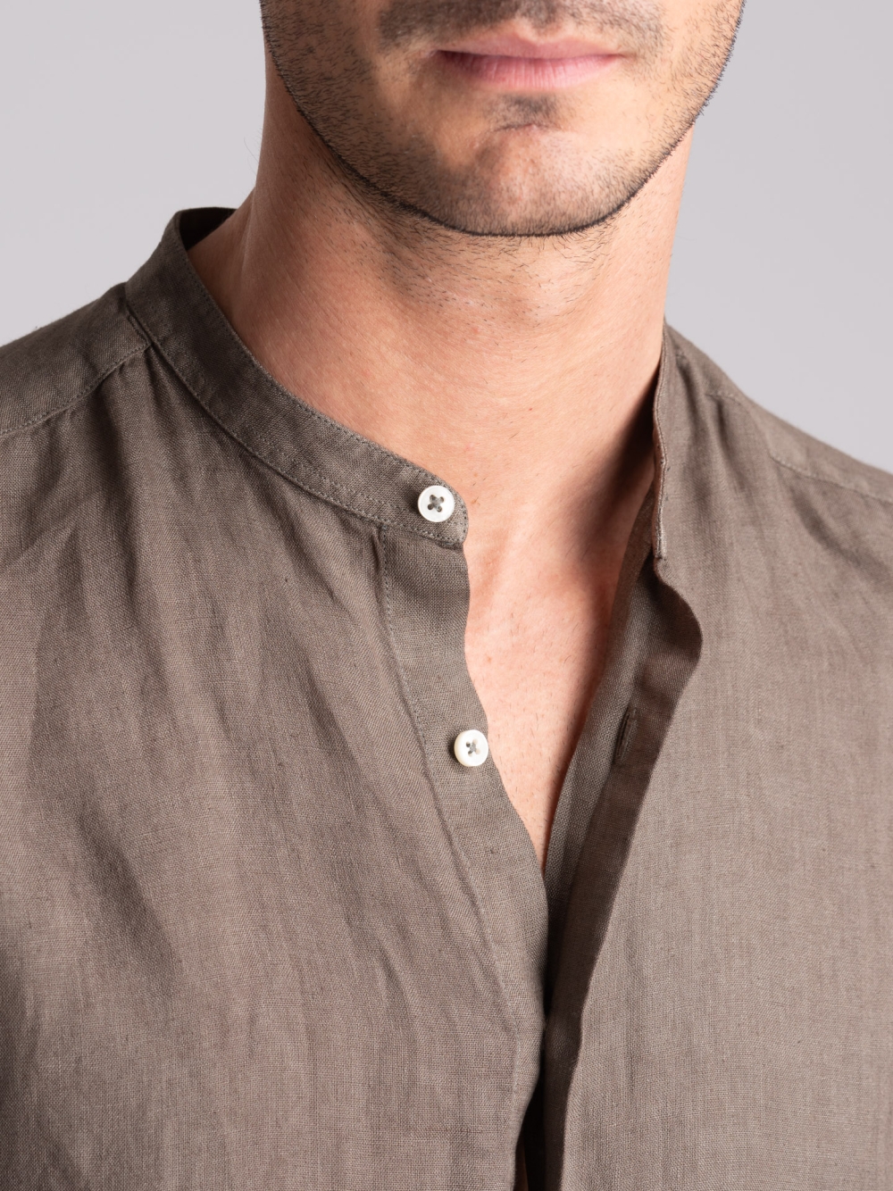 Camicia uomo in lino tinto capo con collo alla coreana.
