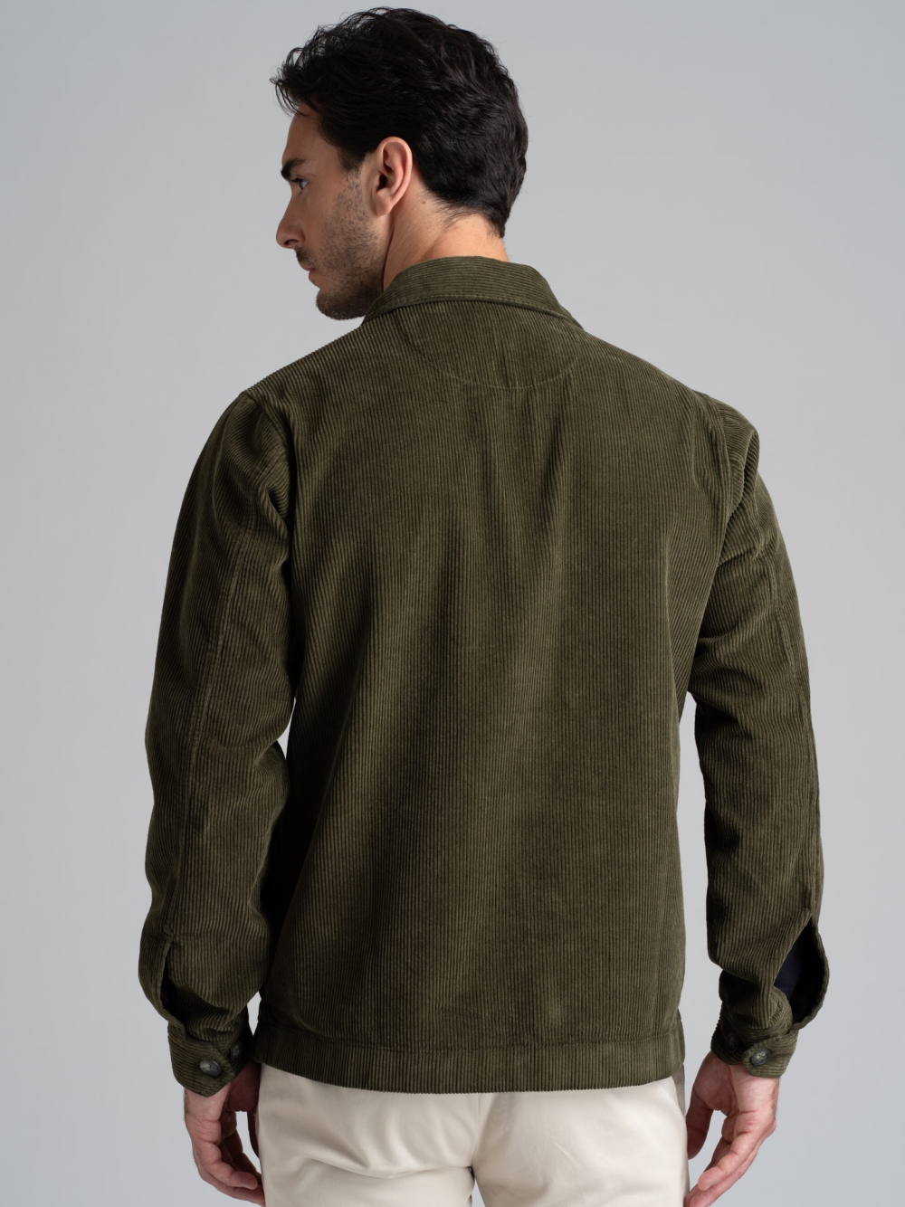 Camicia uomo over con fondo squadrato, spacchetti laterali e tasche applicate, realizzata in velluto 500 righe tinto capo.