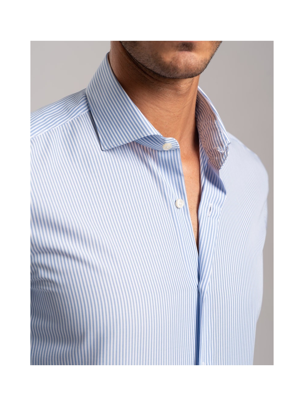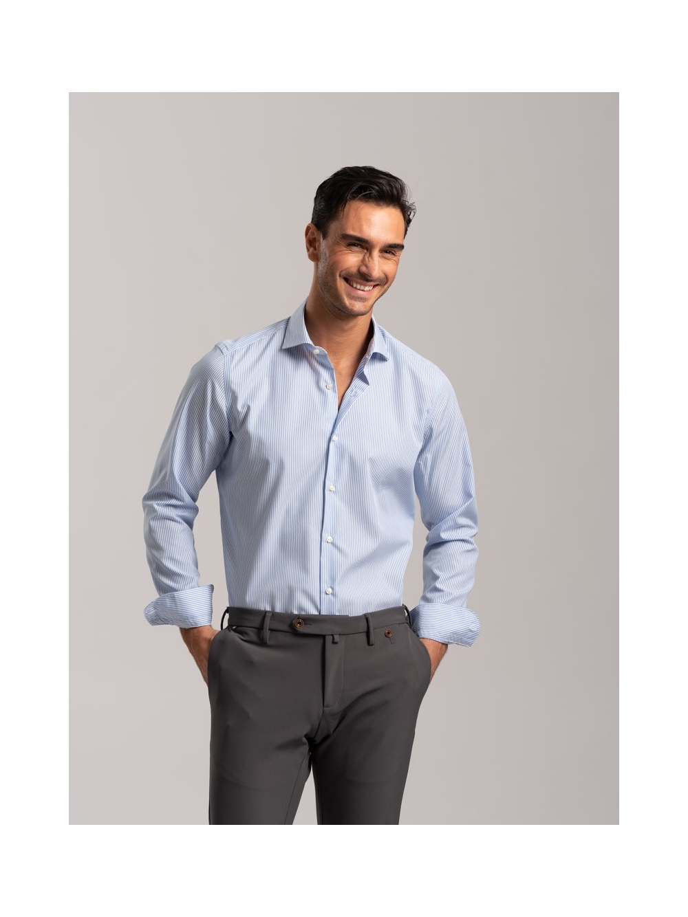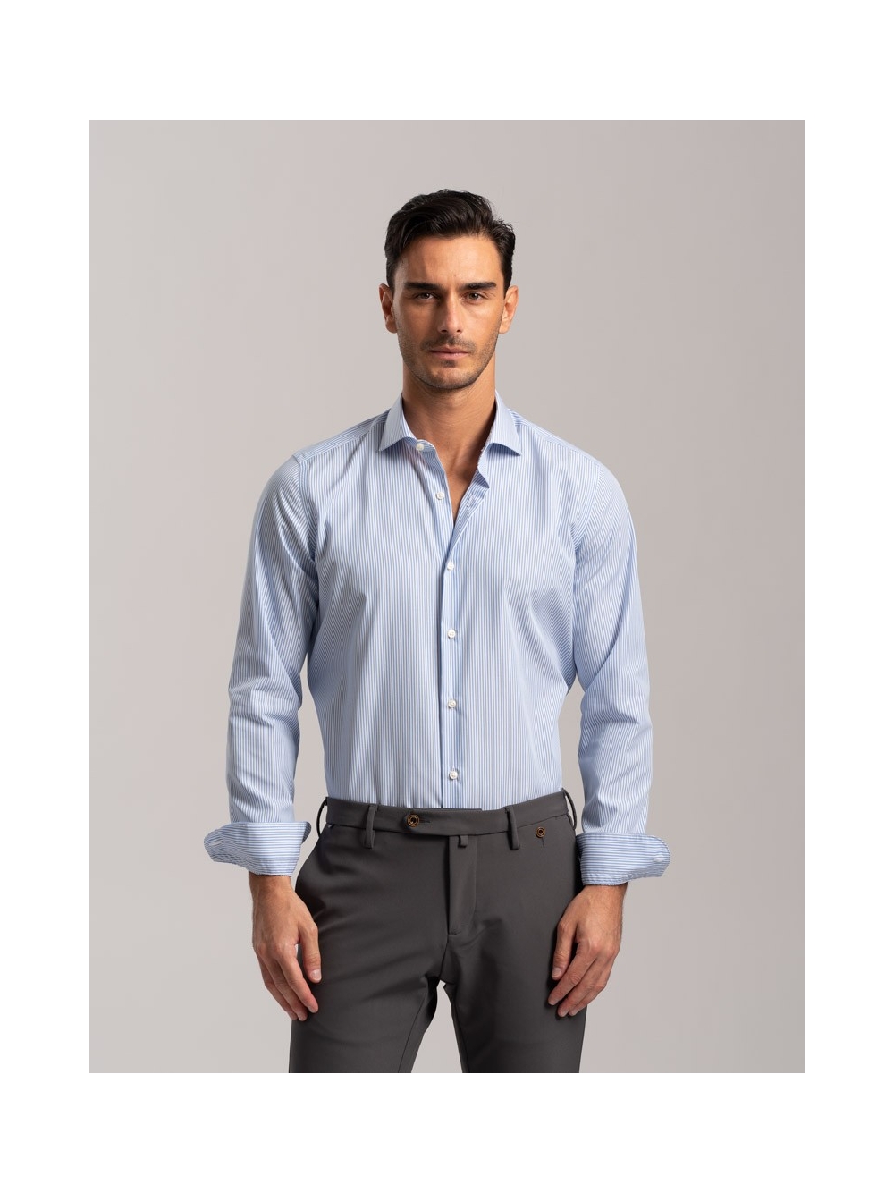 Camicie uomo No-Stiro, fantasia rigata bastonicino pari pari, realizzata in popeline di cotone con collo semi francese