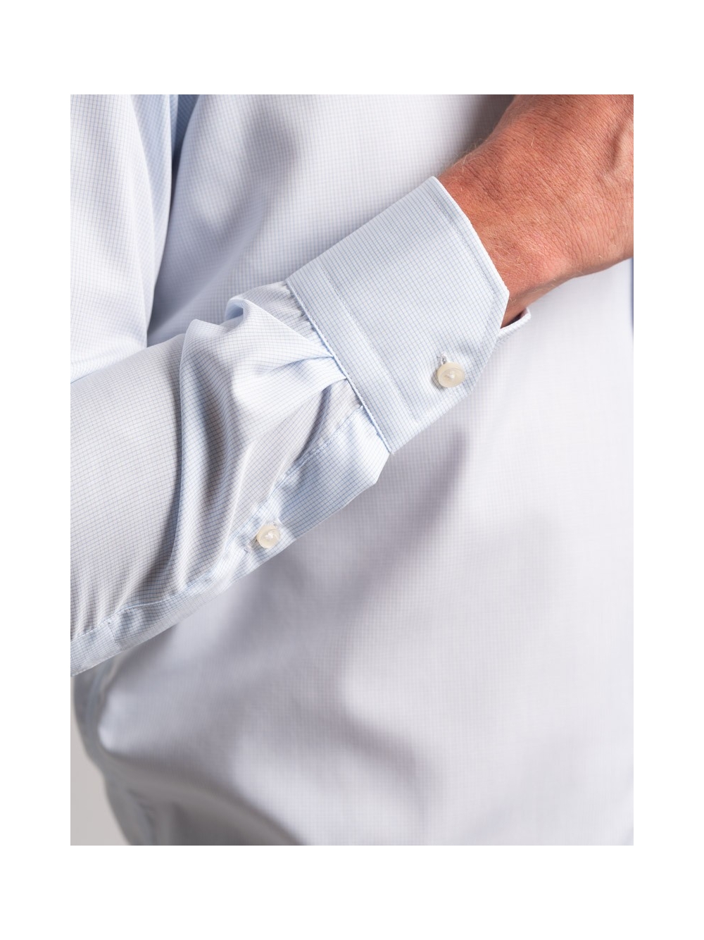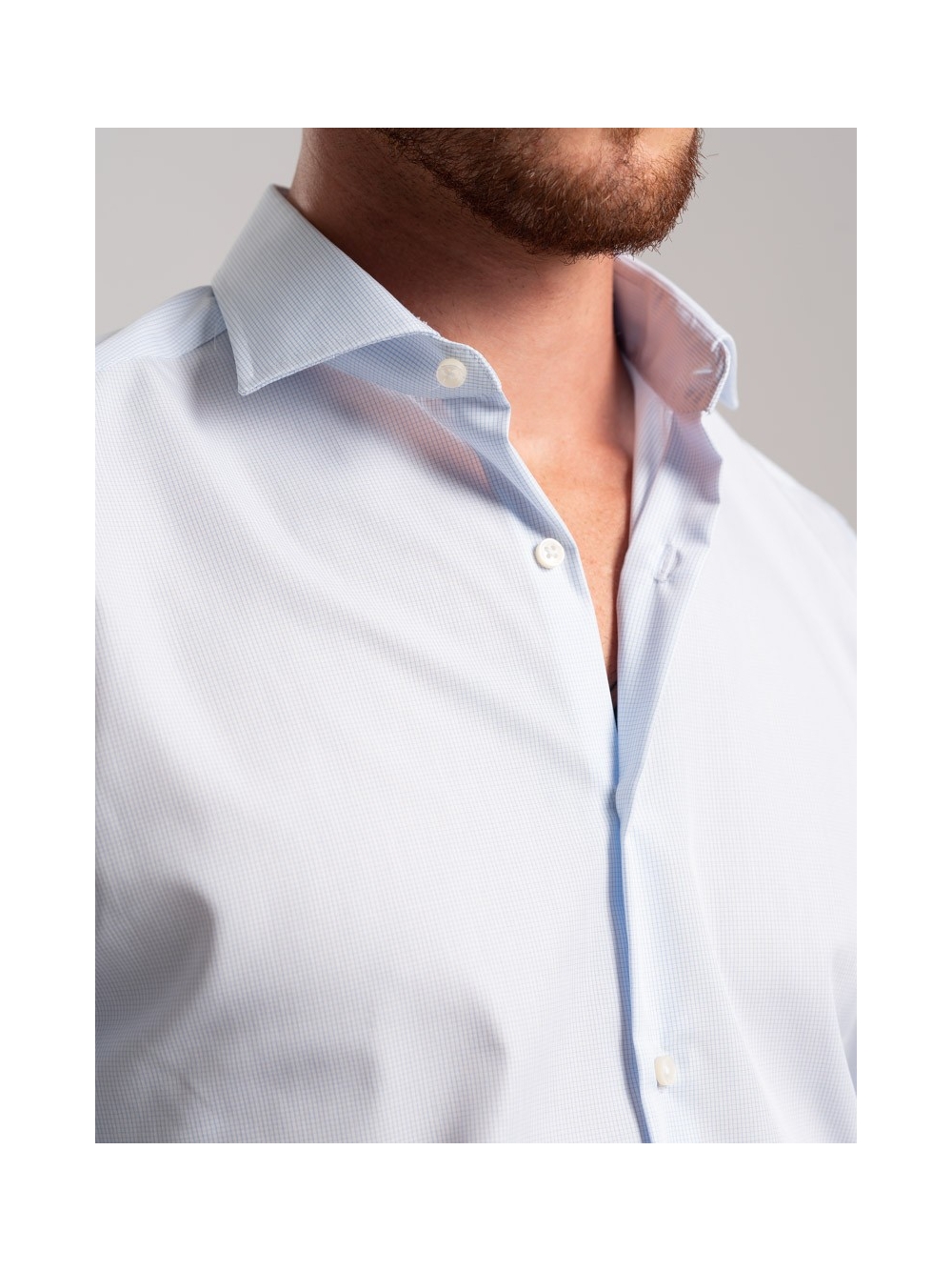 Camicie uomo No-Stiro, fantasia microquadretto, realizzata in popeline di cotone con collo semi francese