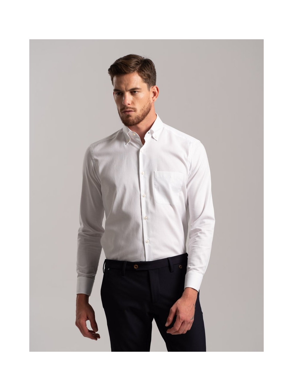 Camicia uomo regular fit tinta unita, realizzata in cotone giro inglese con collo button down