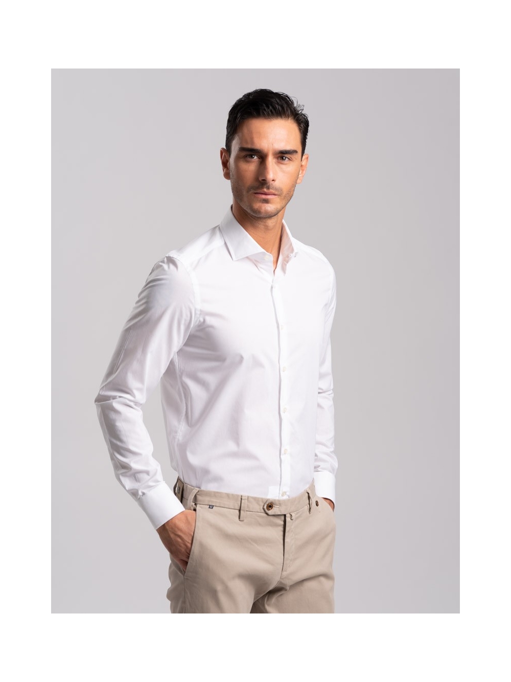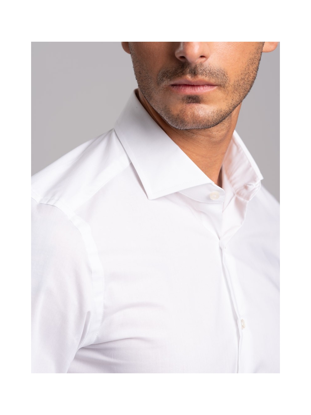 Camicia uomo tinta unita stile office, vestibilità slim fit , realizzata in cotone popeline light , collo semi francese