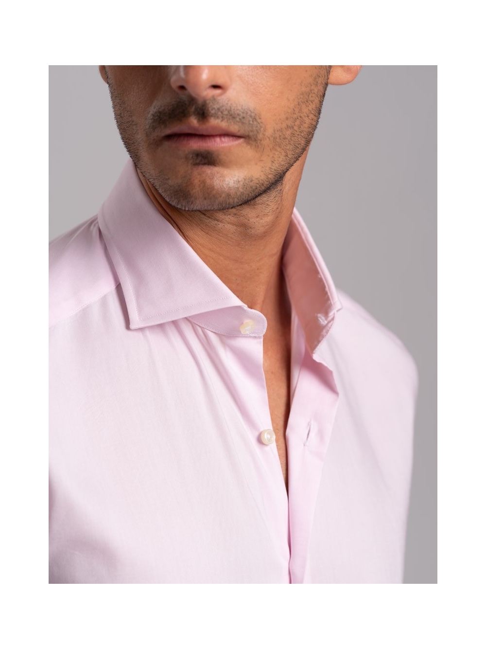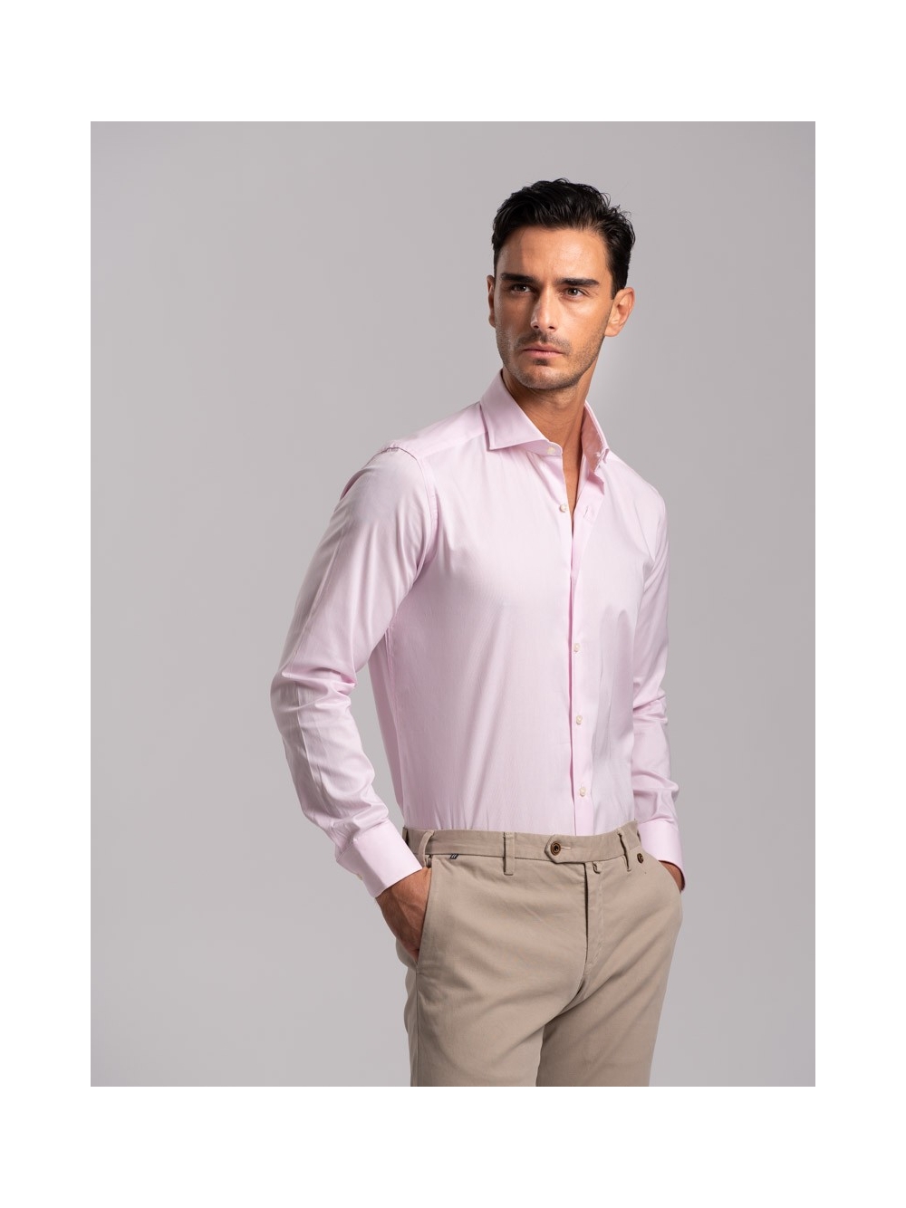 Camicia uomo regular fit tinta unita, realizzata in cotone pin point- panamino con collo semi francese