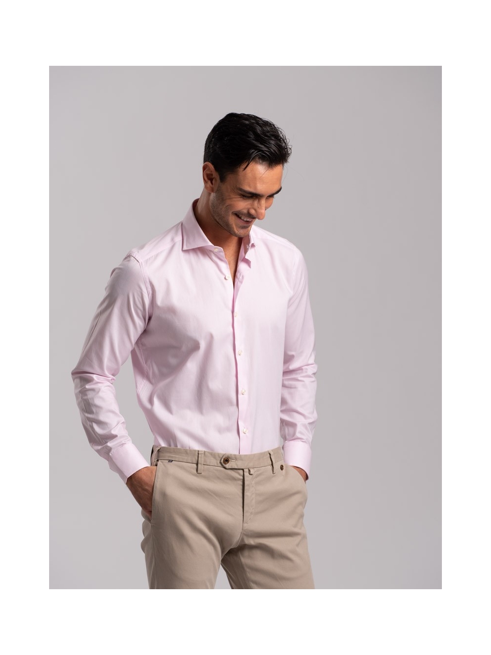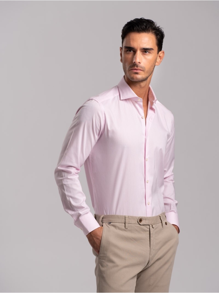 Camicia uomo regular fit tinta unita , realizzata in cotone pin point- panamino con collo semi francese