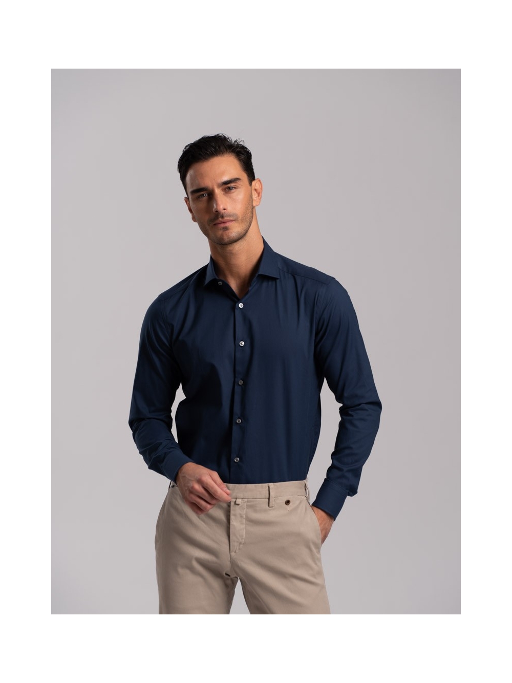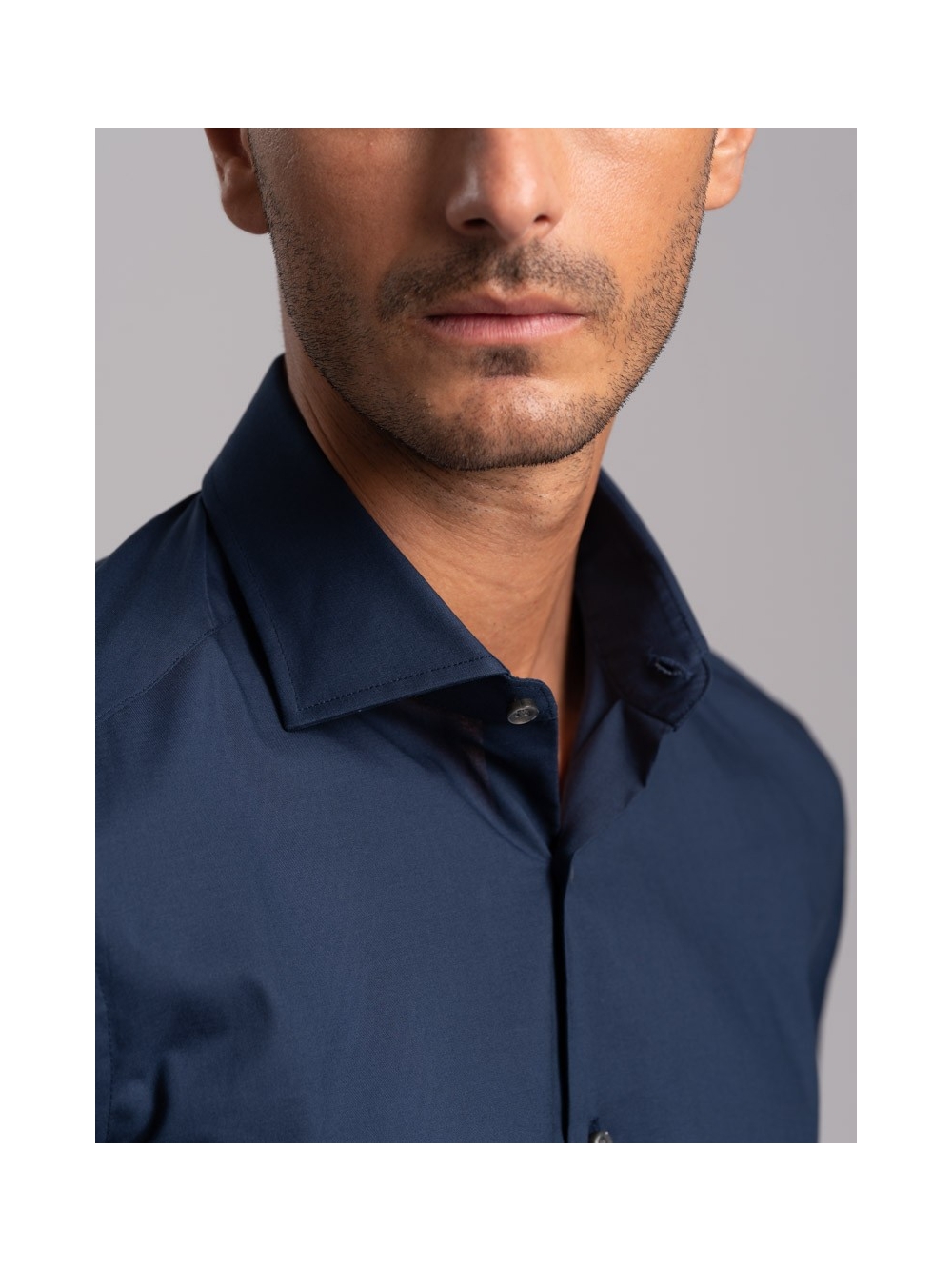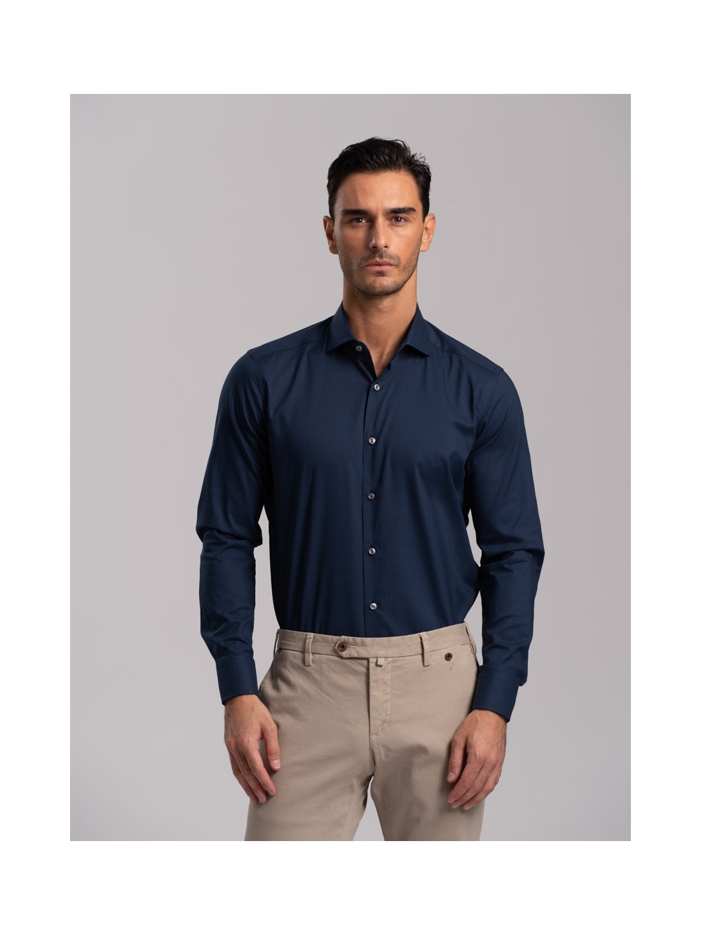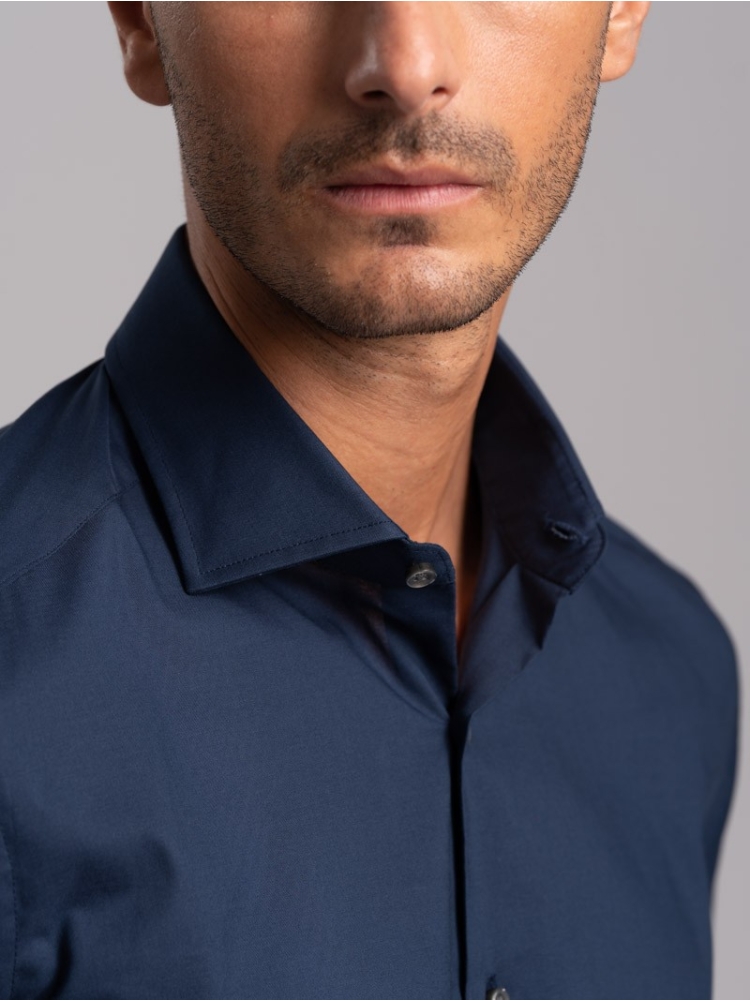 Camicia uomo regular fit tinta unita , realizzata in cotone pin point- panamino con collo semi francese