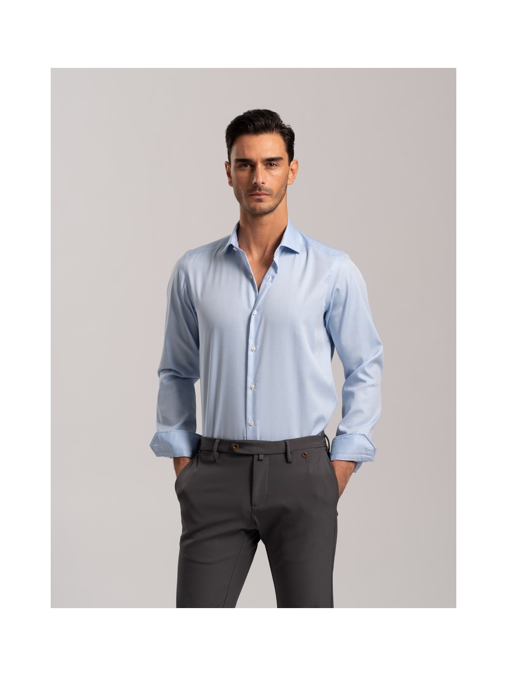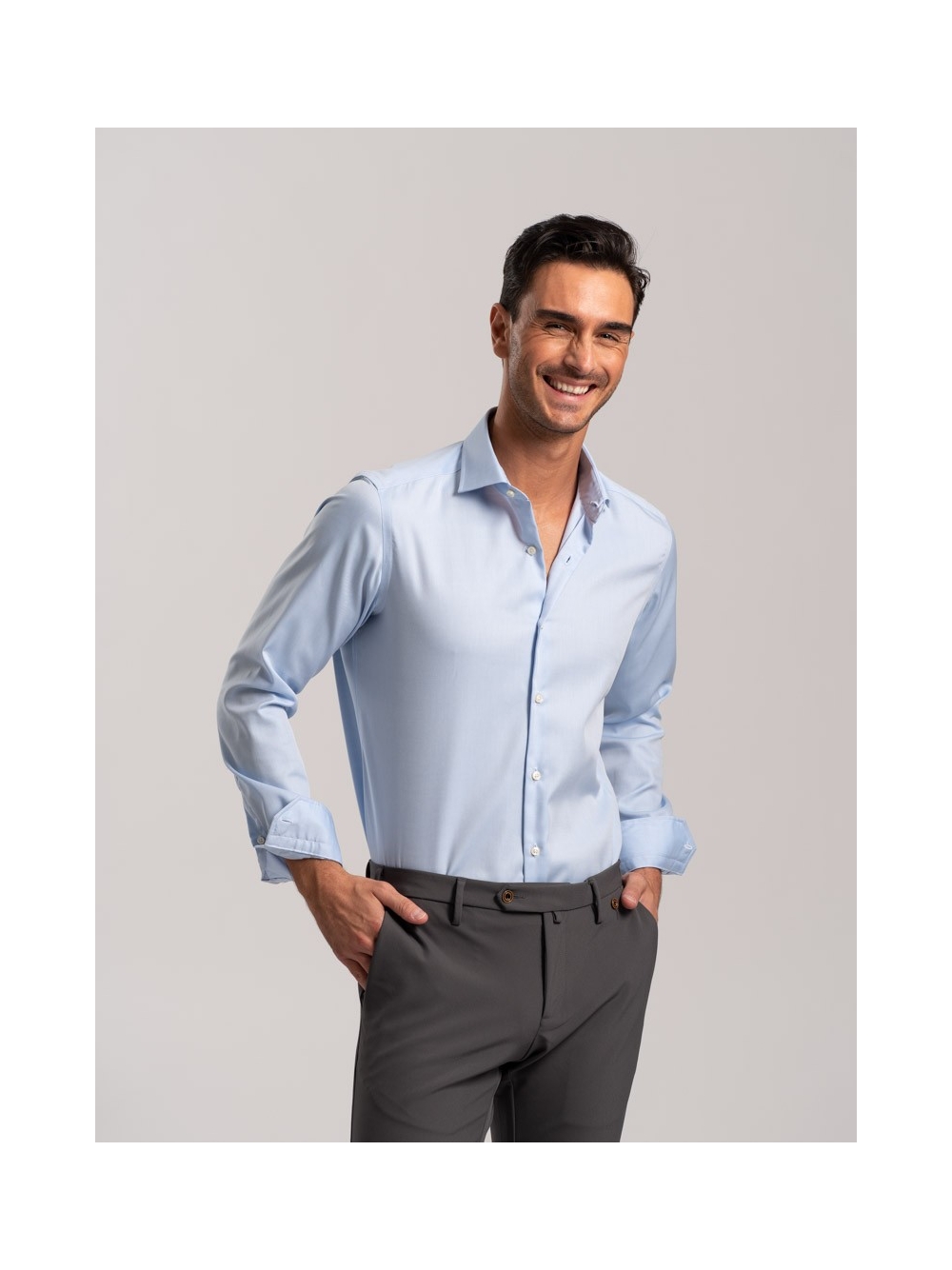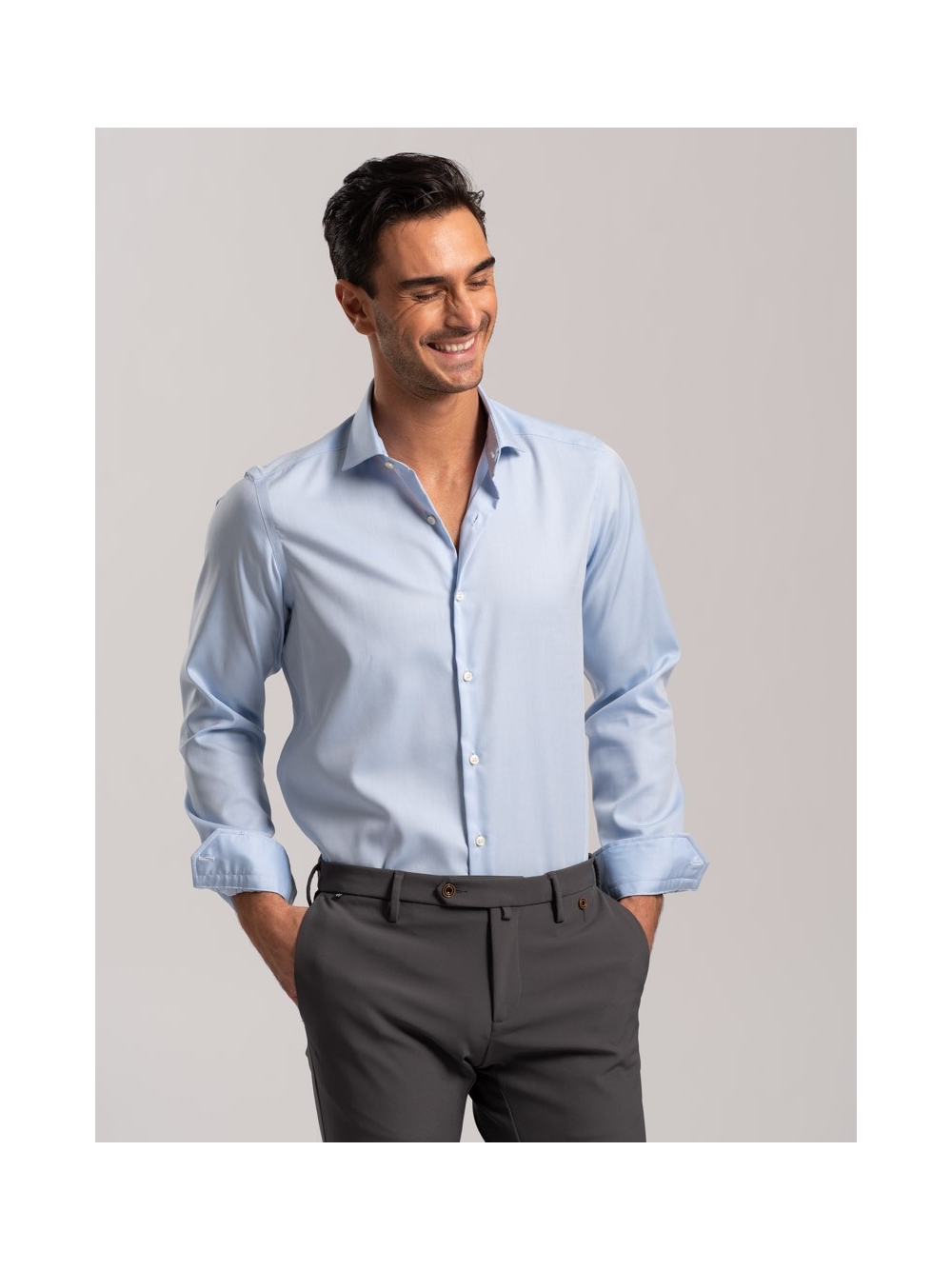 Camicia uomo No-Stiro tinta unita, realizzata in cotone twill con collo semi francese