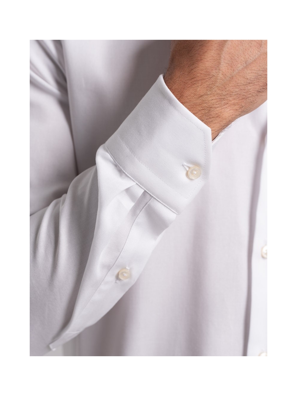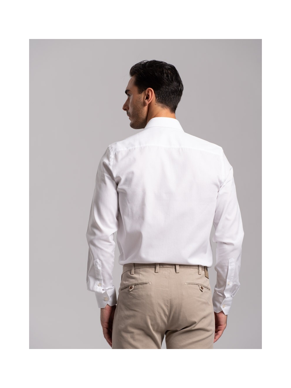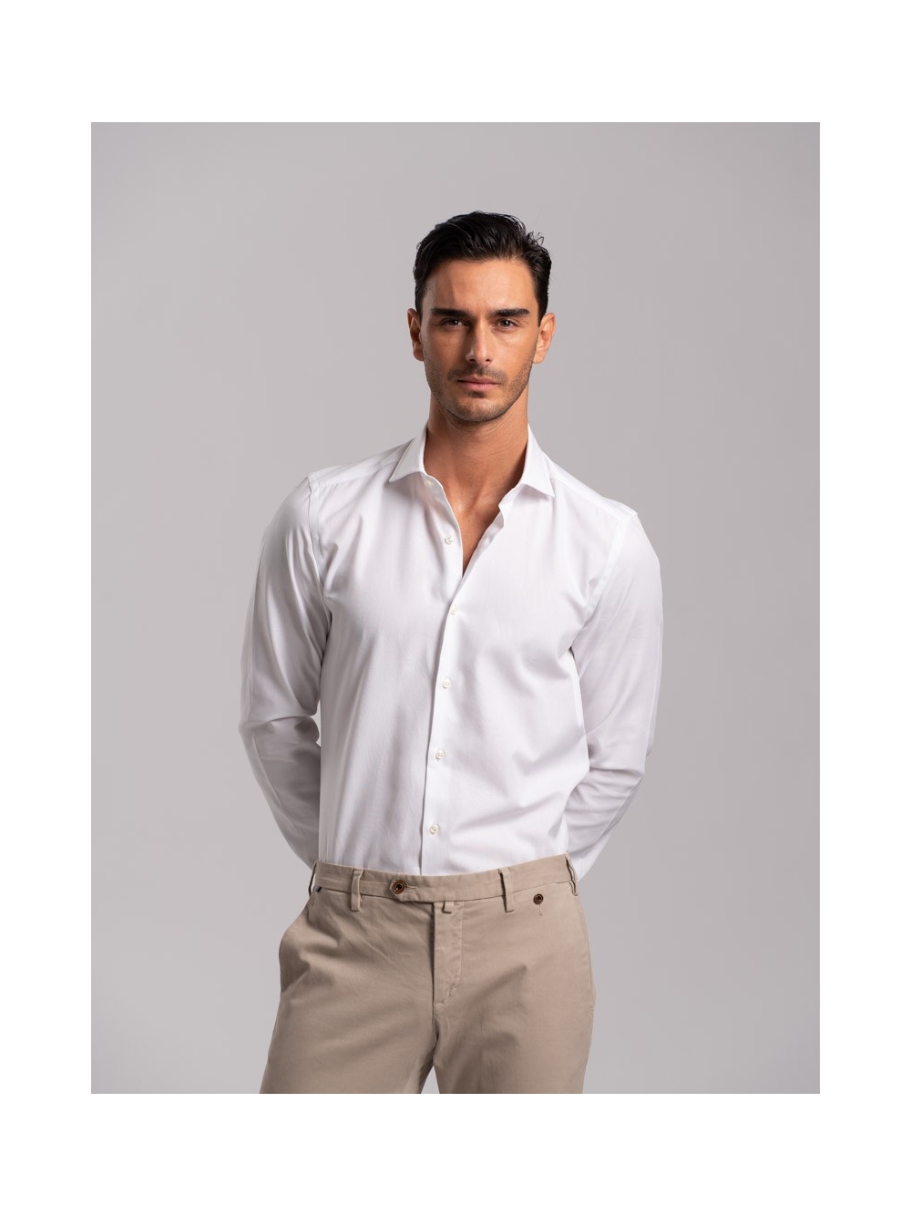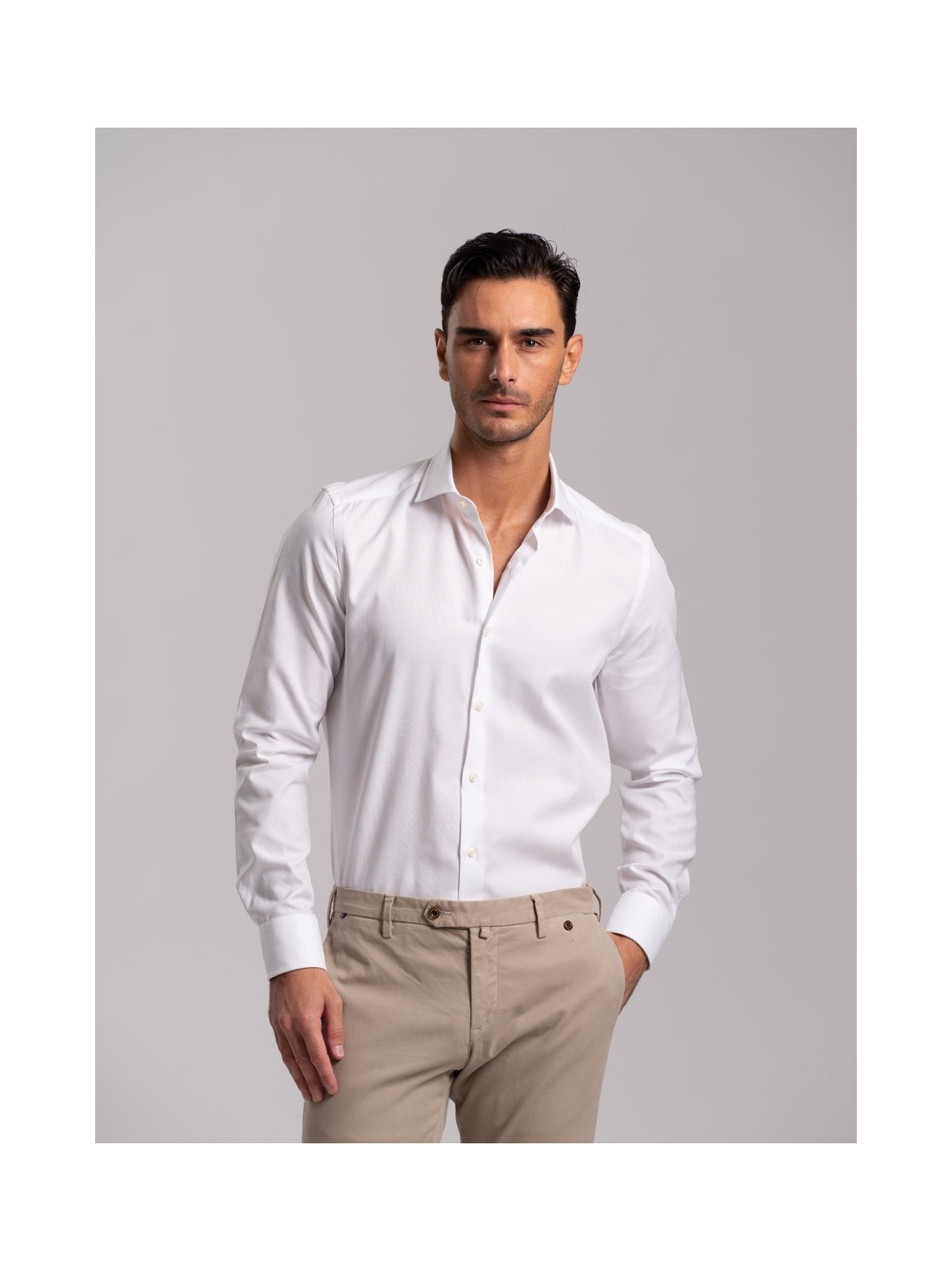 Camicia uomo tinta unita stile office, vestibilità slim fit, realizzata in cotone pin point, collo semi francese