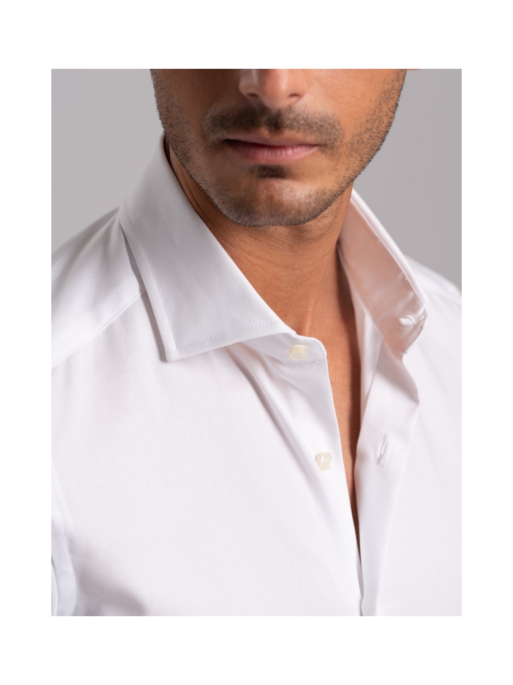 Camicia uomo tinta unita stile office, vestibilità slim fit , realizzata in cotone pin point , collo semi francese