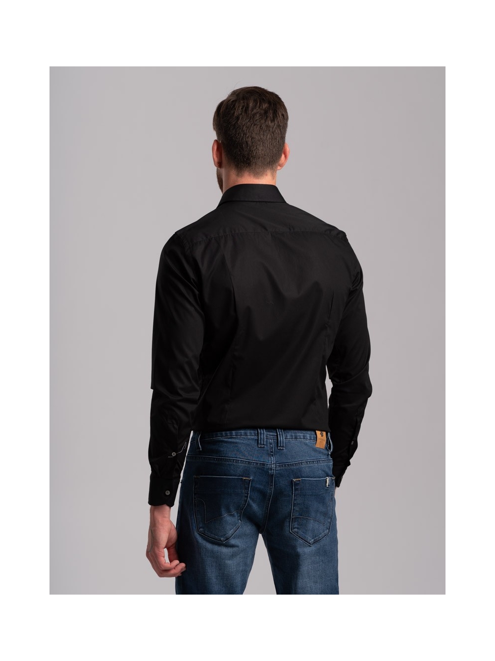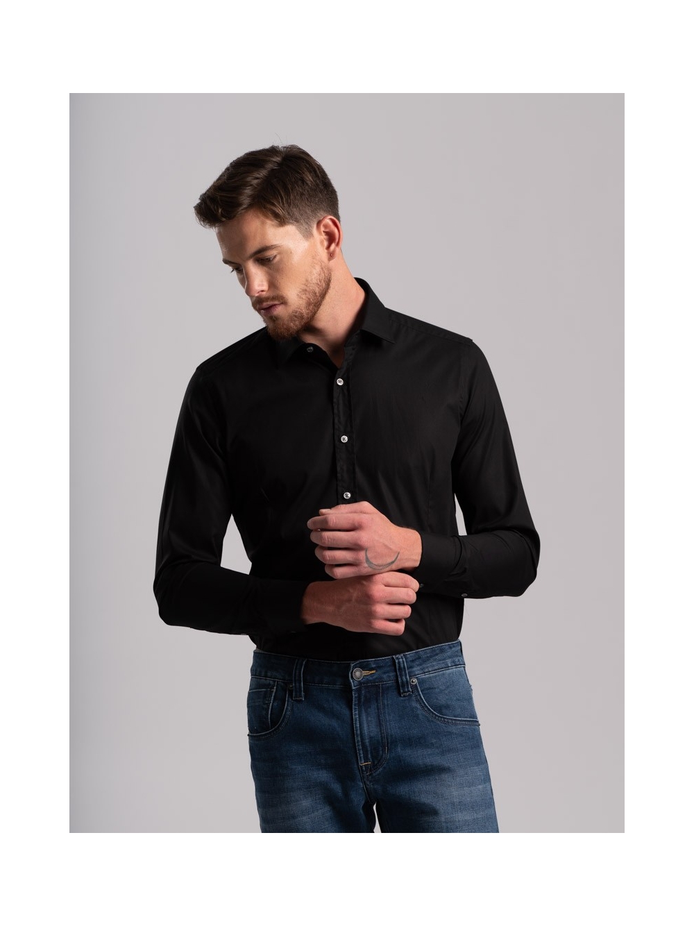 Camicia uomo tinta unita super slim fit con doppia pince e collo piccolo, realizzata in cotone popeline stretch