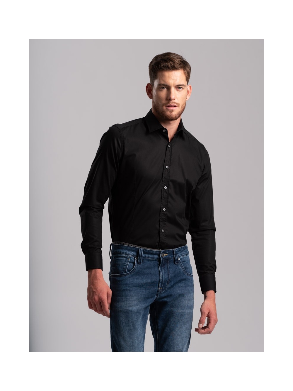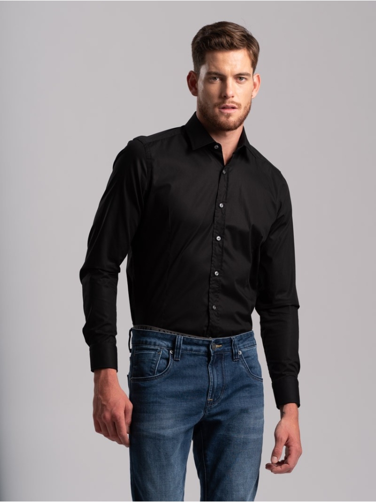 Camicia uomo tinta unita in popeline stretch