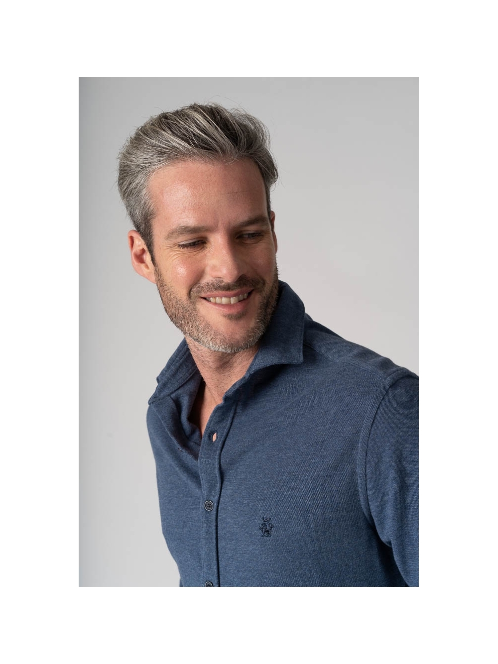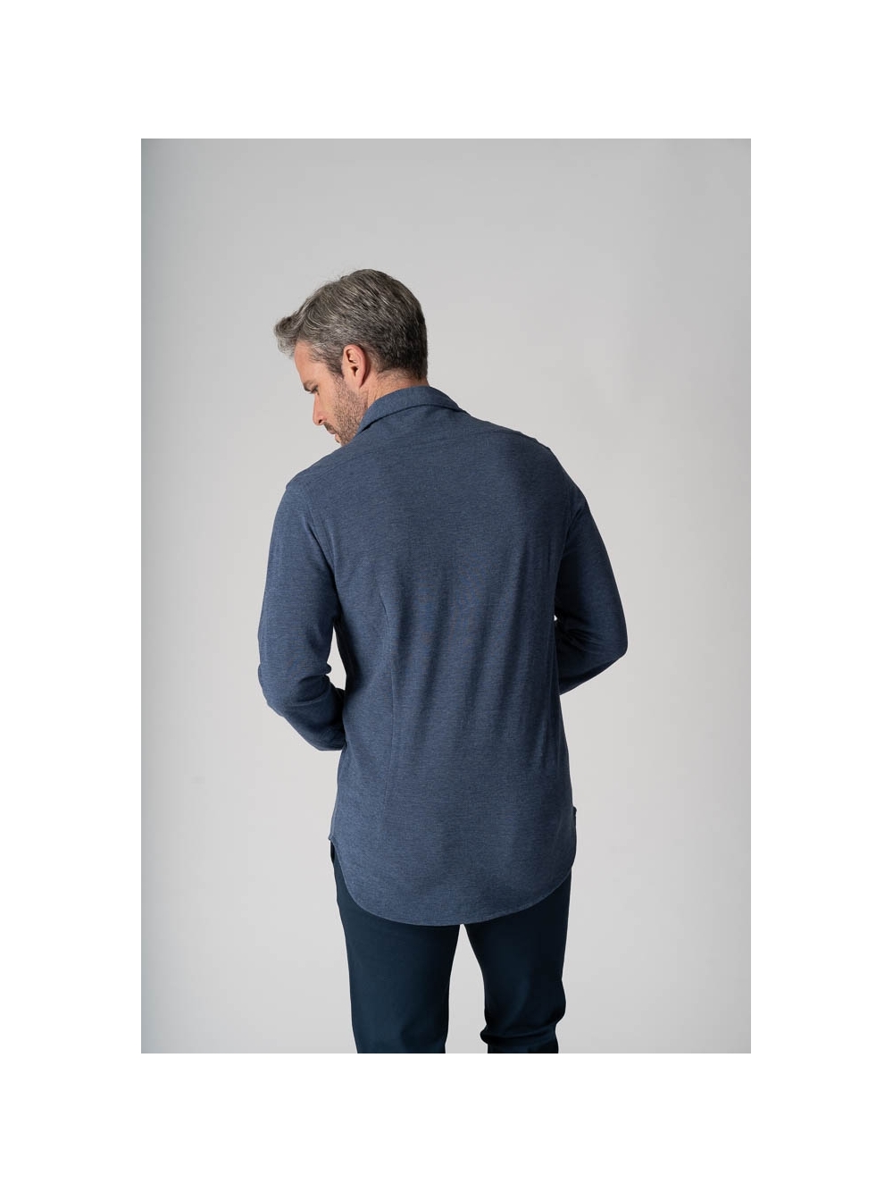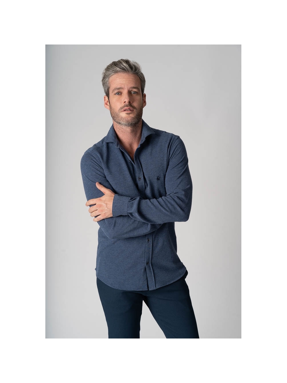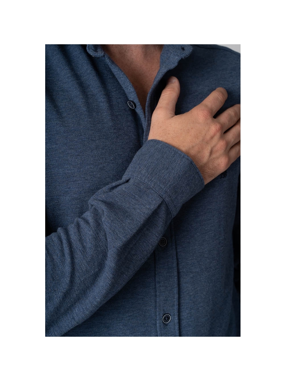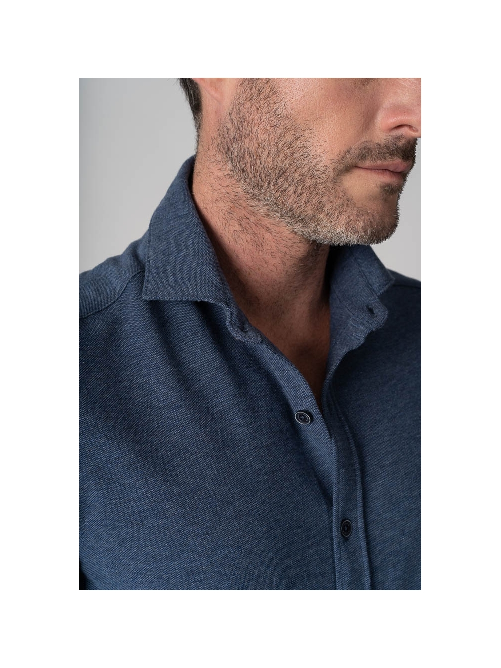 Camicia uomo realizzata in 100% cotone piquet melange, taglio slim e chiusura con abbottonatura centrale