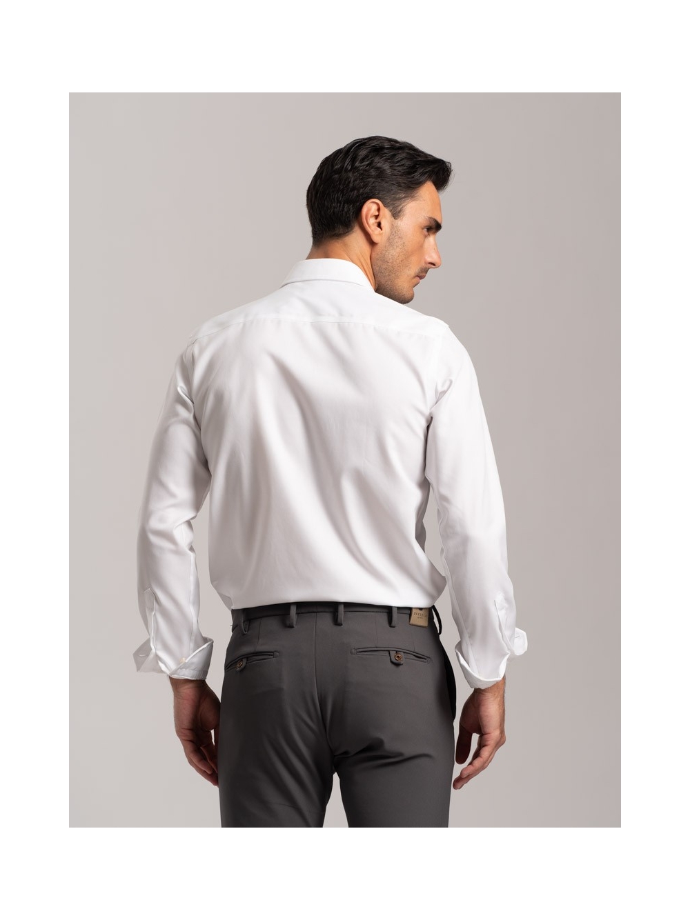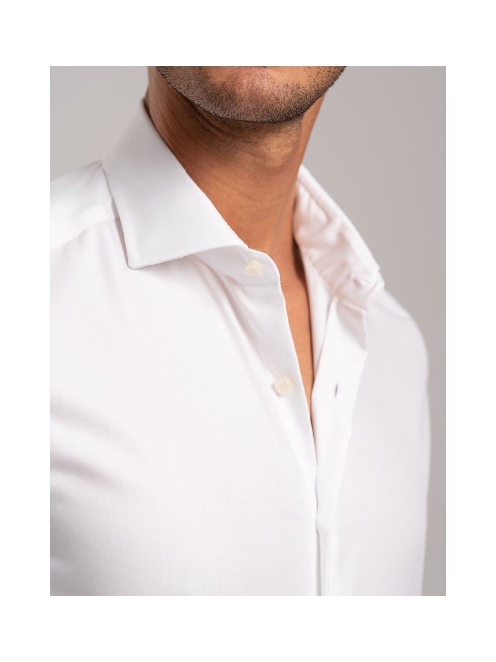 Camicia uomo No-Stiro tinta unita, realizzata in cotone twill con collo semi francese