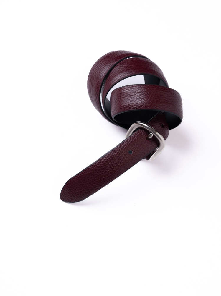 La cintura donna realizzata in pelle martellata con altezza 3 cm, è caratterizzata da una fibbia in nichel satinato ed è disponibile nelle varianti colere nero, ottanio, bordeaux e cammello, in abbinamento alle nuance della collezione autunno inverno.