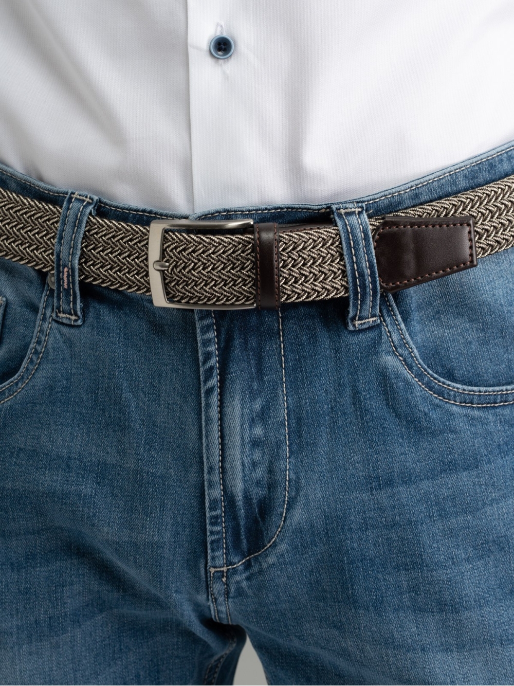 Cintura uomo realizzata con fascia elastica di ottima qualità in tonalità melange con finale in pelle, tono su tono.