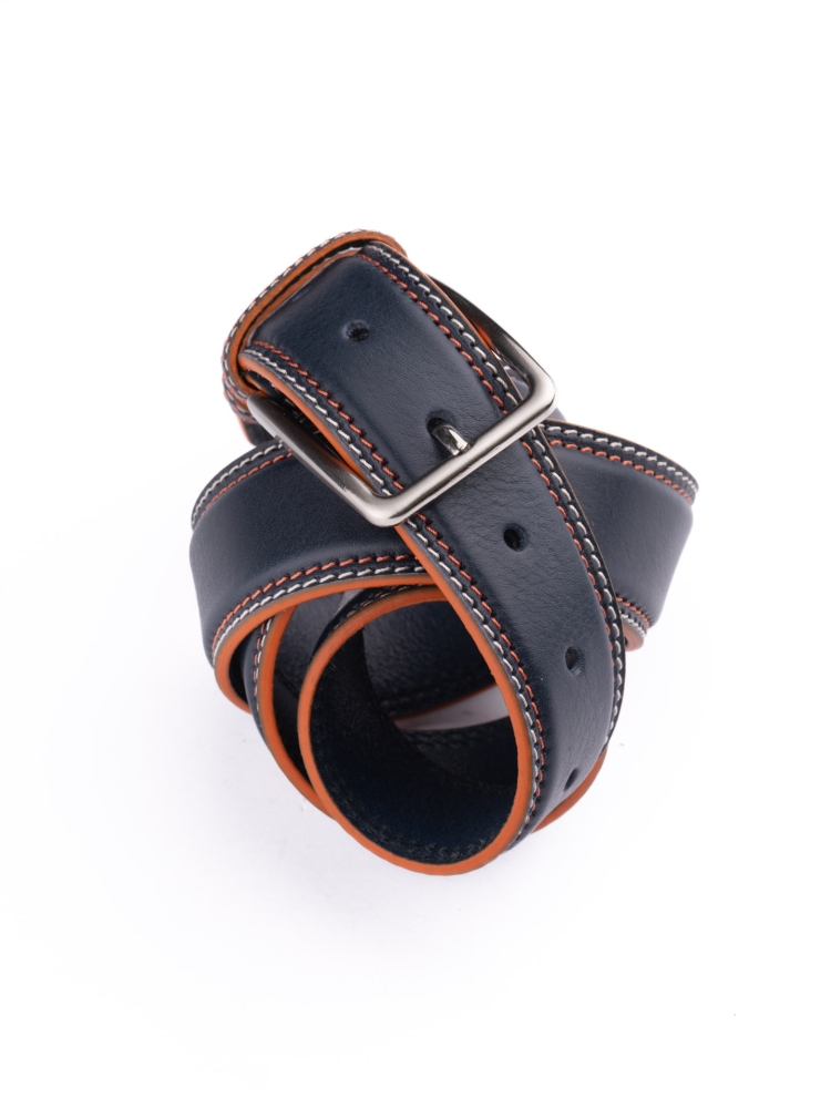Cintura uomo in pelle con cuciture e bordo a contrasto