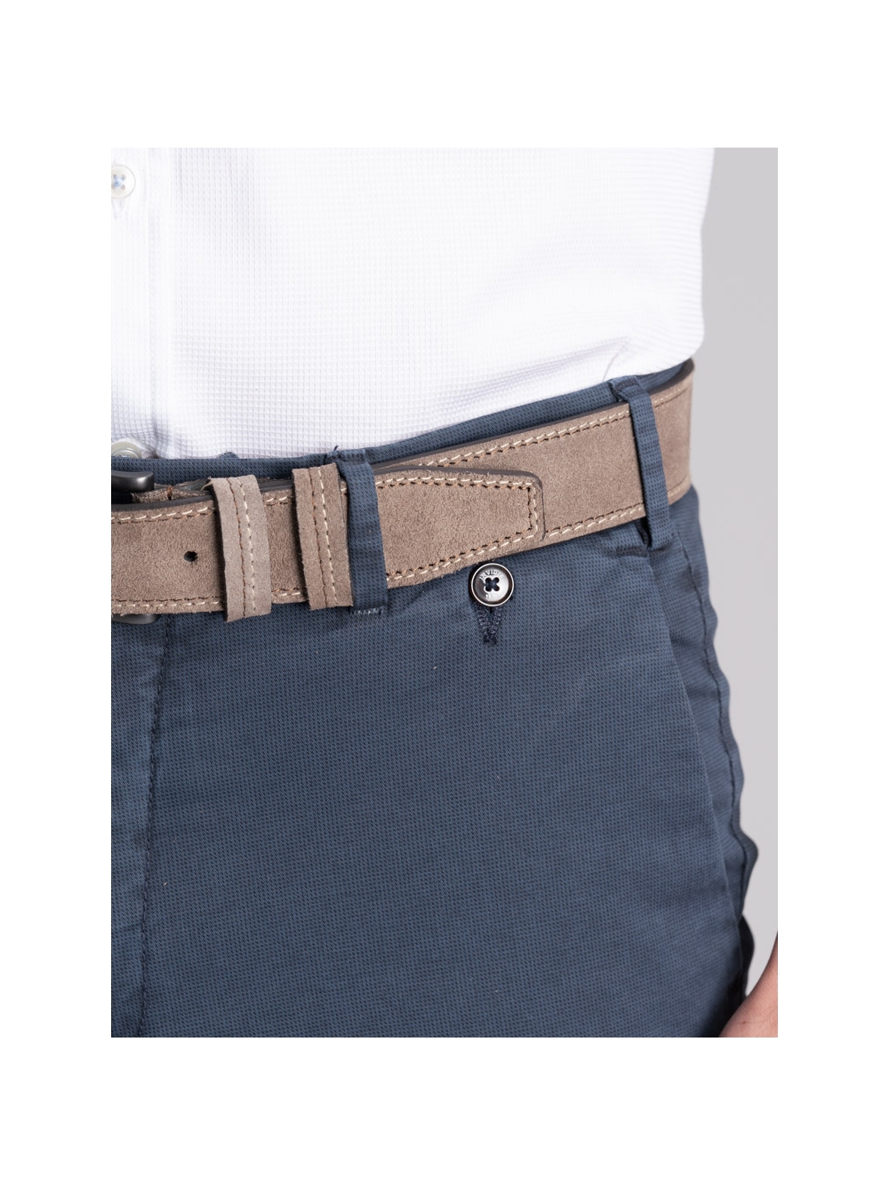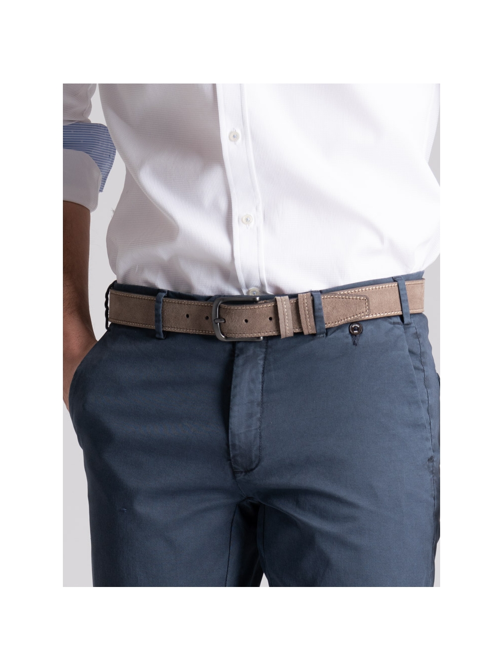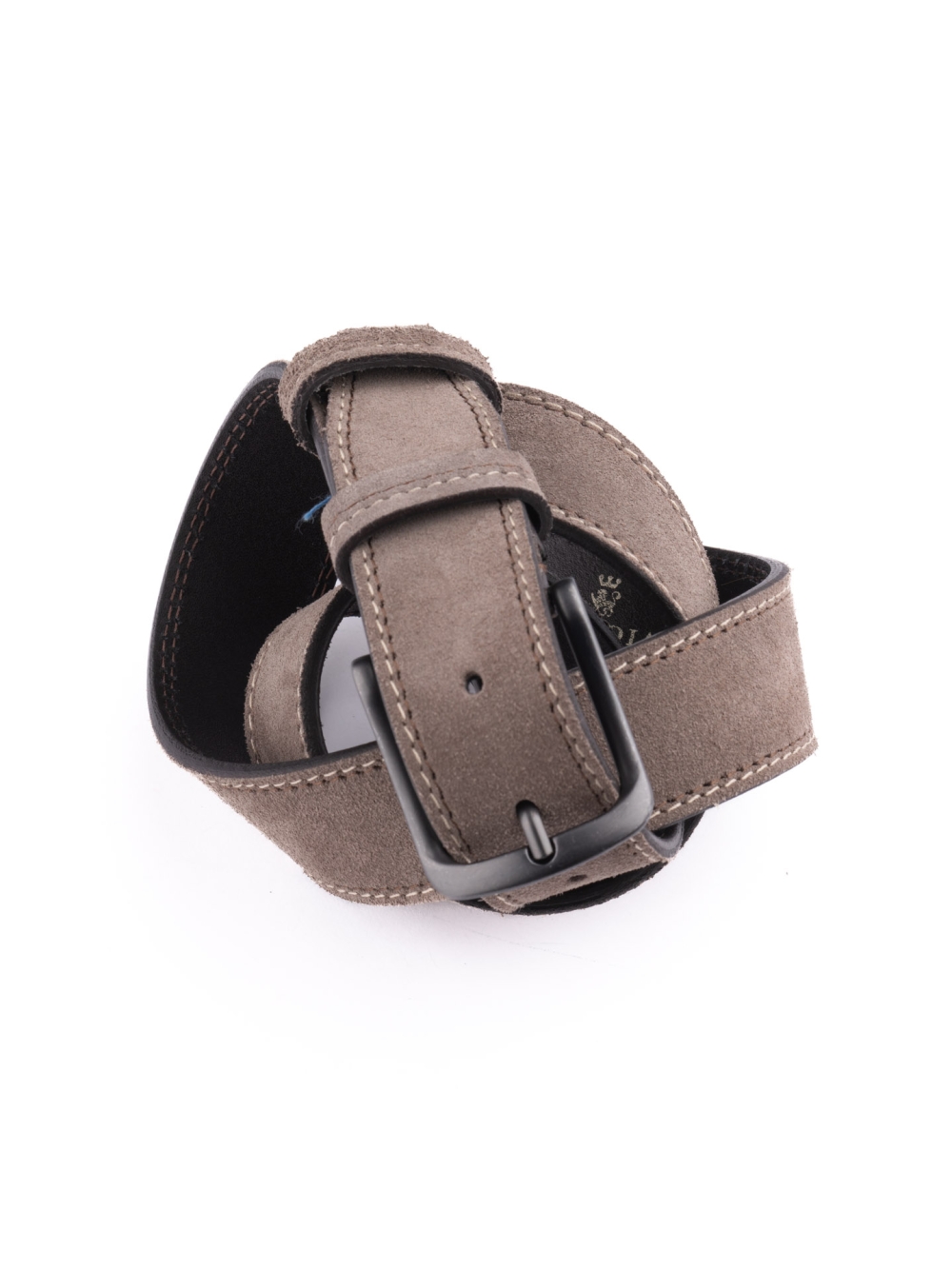 Cintura uomo in camoscio nelle varianti colore moro, sabbia e avio, con doppia impuntura a contrasto.