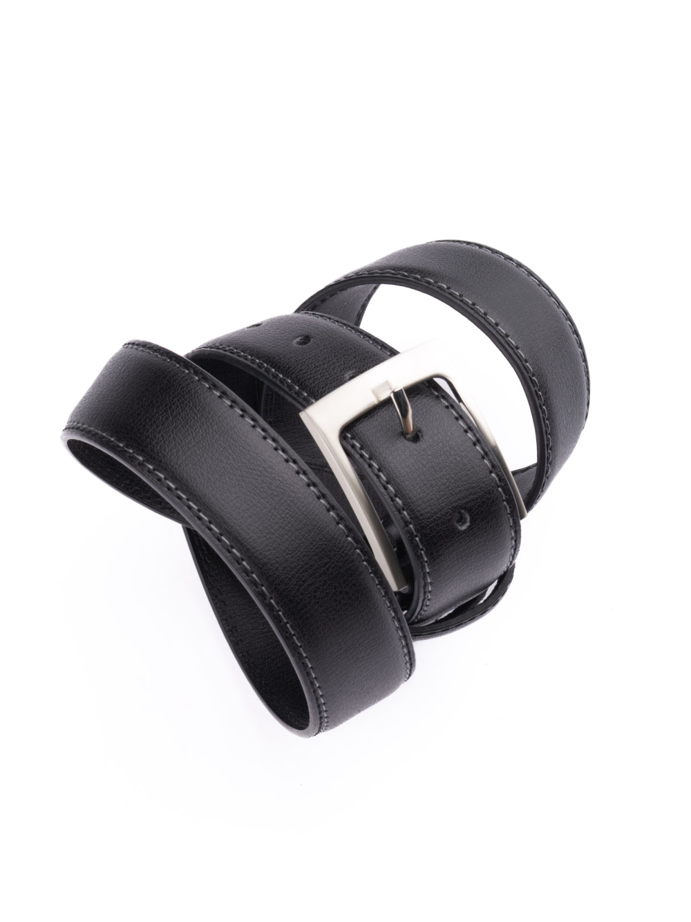 Cintura uomo classica realizzata in pelle effetto rugato con cuciture laterali a contrasto, disponibile nelle varianti colore nero, marrone e blu.