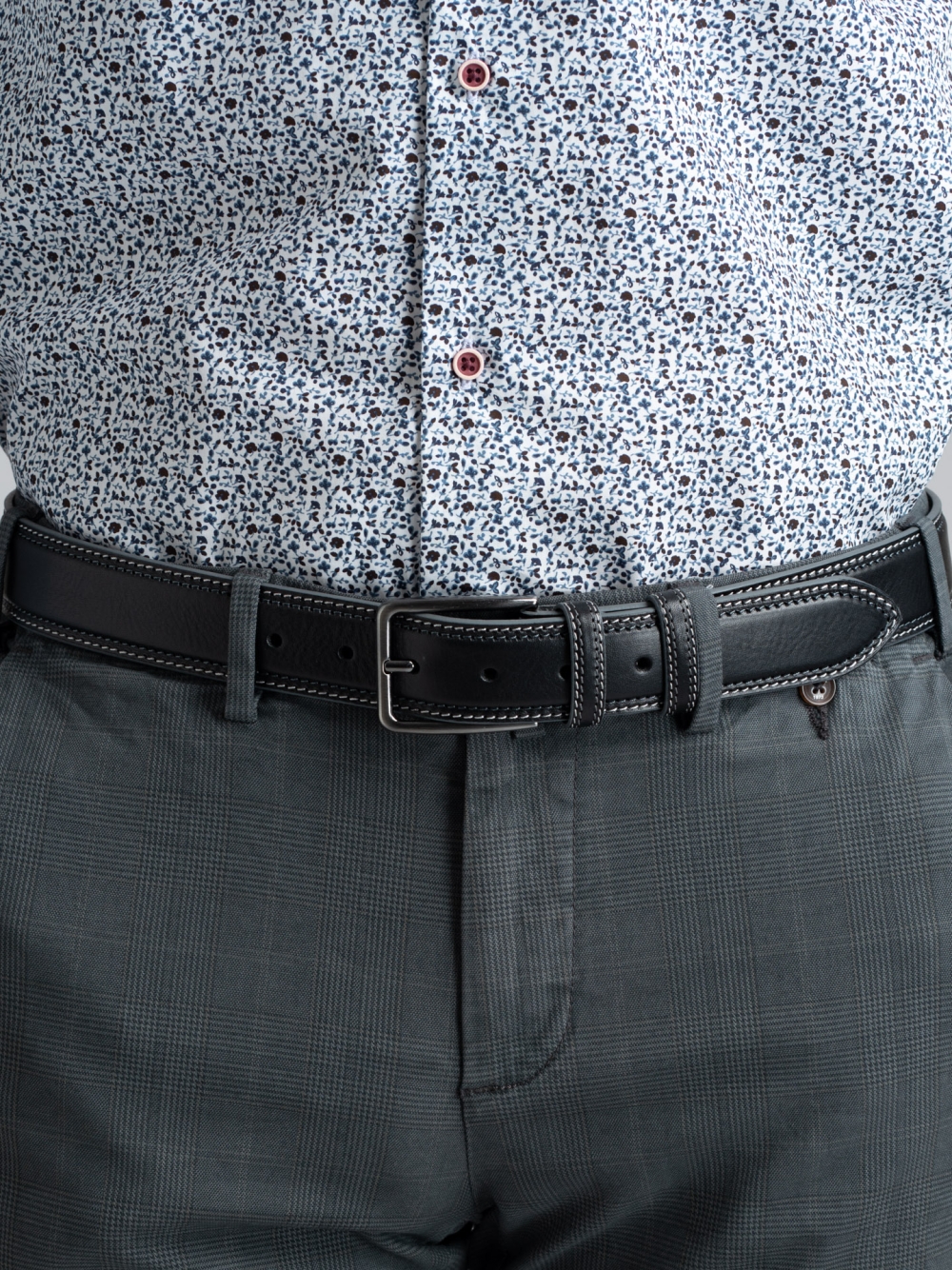 Cintura uomo in pelle con cuciture di due colori