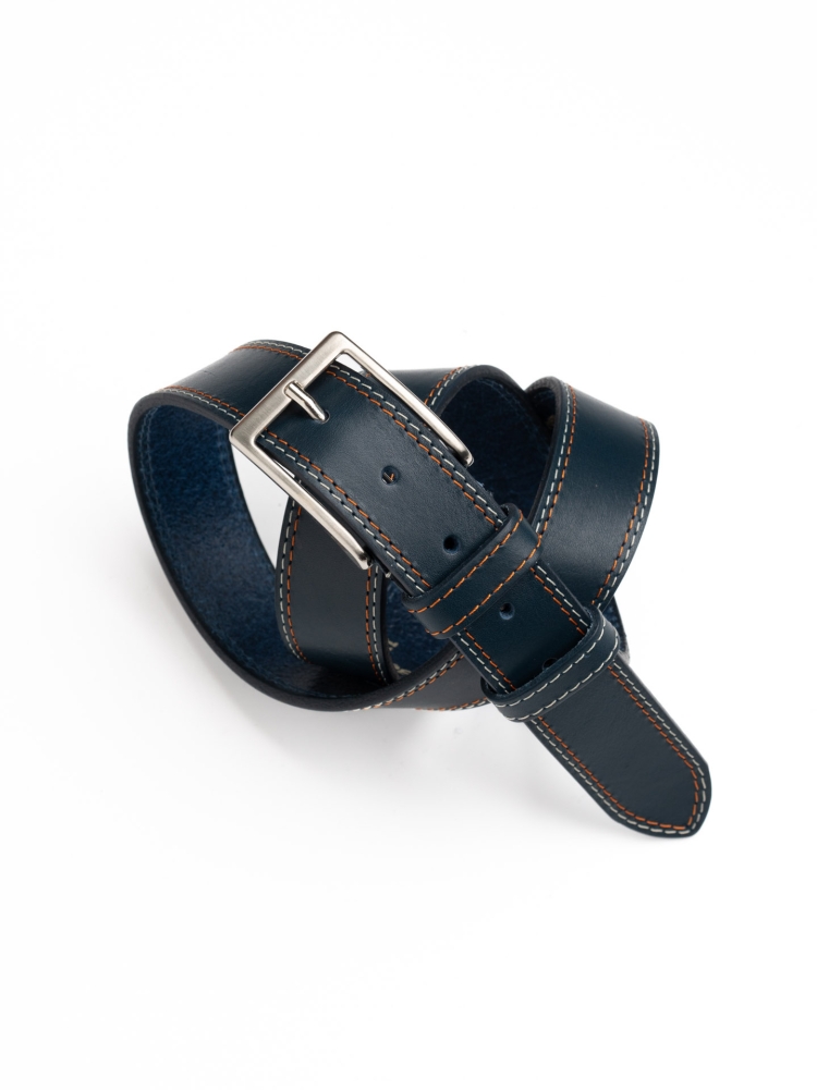 Cintura uomo in pelle con doppia cucitura a contrasto
