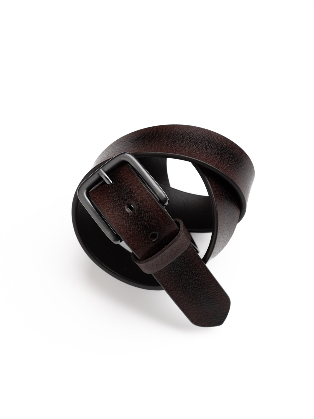 Cintura uomo in pelle liscia con effetto vintage, fibbia in finitura titanio satinato e borchia logata Invidia 1973.