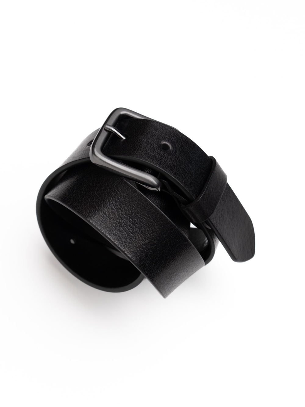 Cintura uomo in pelle liscia con effetto vintage, fibbia in finitura titanio satinato e borchia logata Invidia 1973.