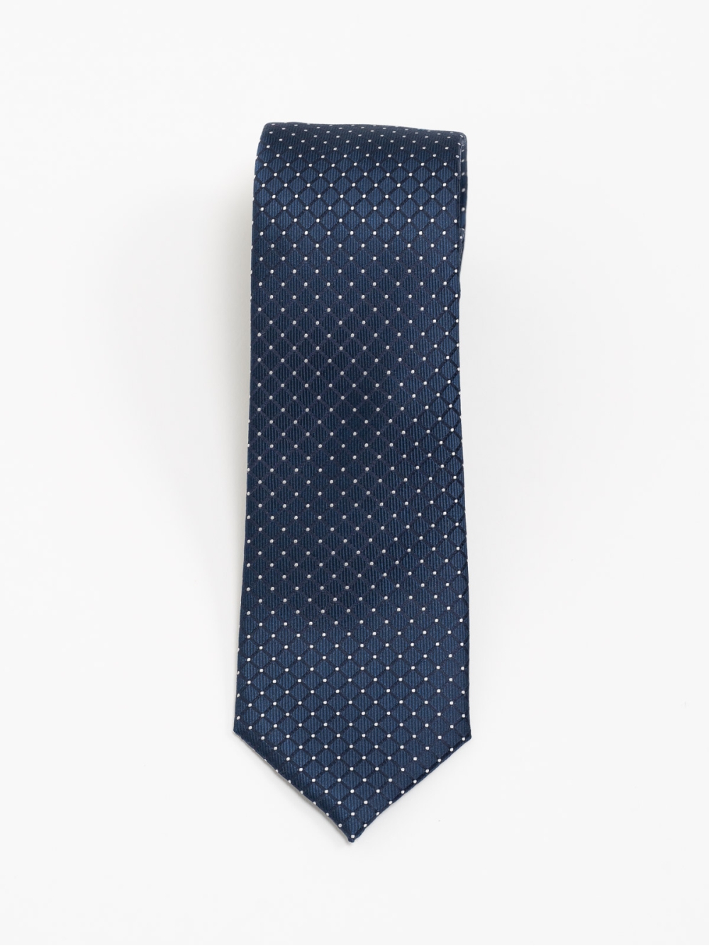 Cravatta uomo in tessuto operato 100% seta in tessuto operato con fantasia bicolore a rombi nei toni del bluette.