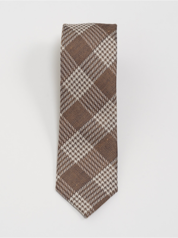 Cravatta uomo 100% seta in tessuto monocromatico con fantasia Principe di Galles, nelle varianti colore blu, azzurro e tortora.