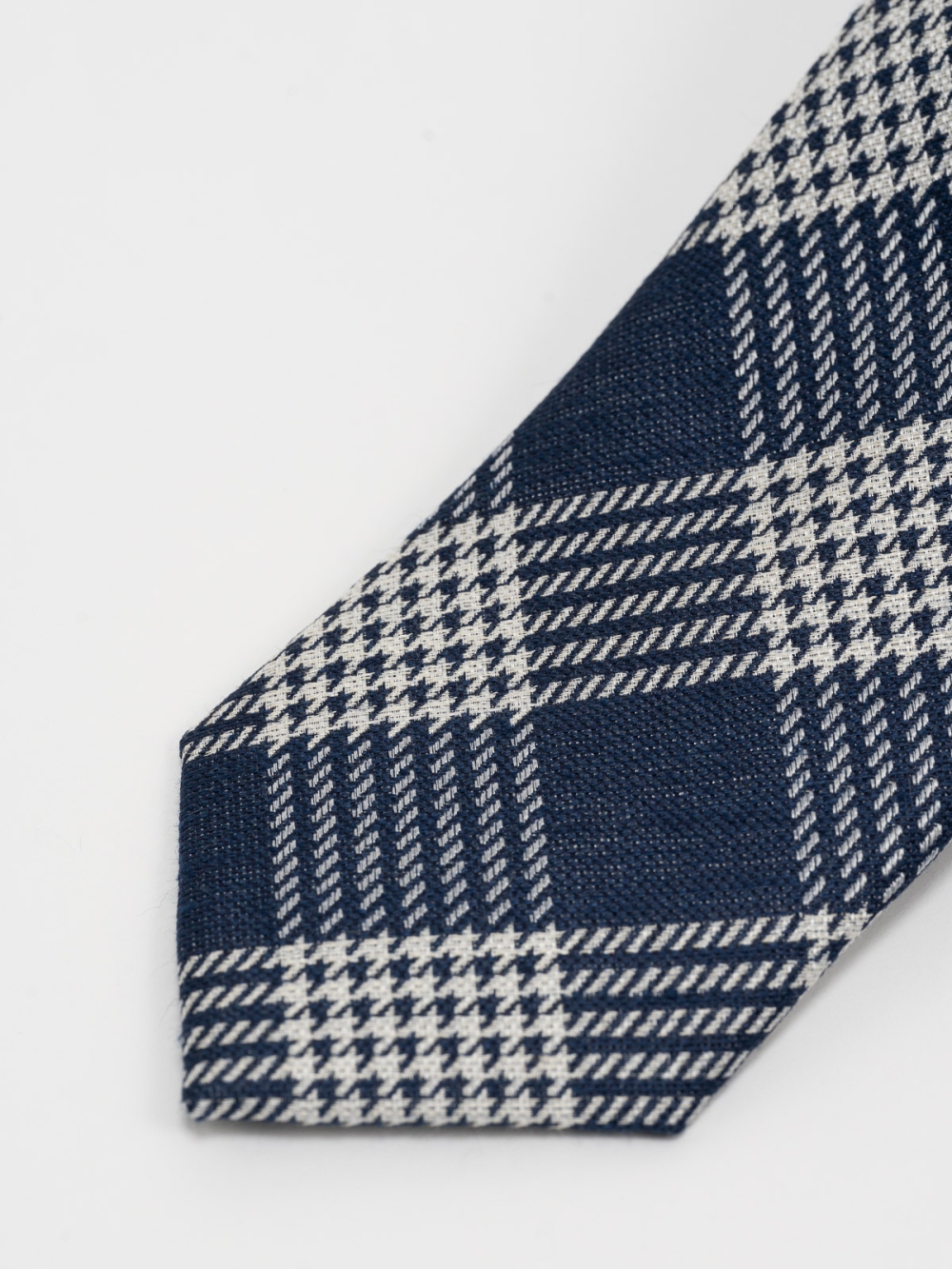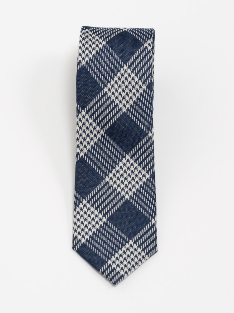 Cravatta uomo 100% seta in tessuto monocromatico con fantasia Principe di Galles, nella variante colore blu.