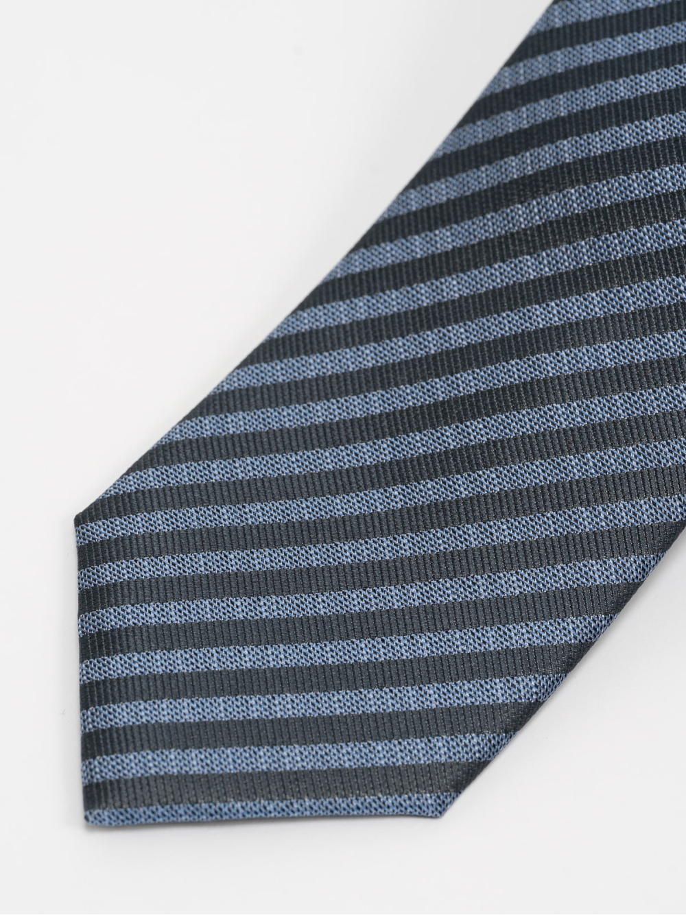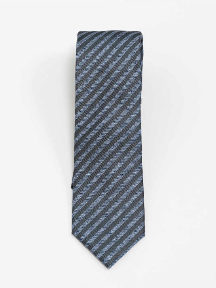 Cravatta uomo 100% seta con fantasia jacquard a righe nei toni del blu avio.
