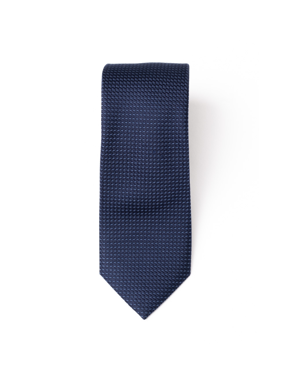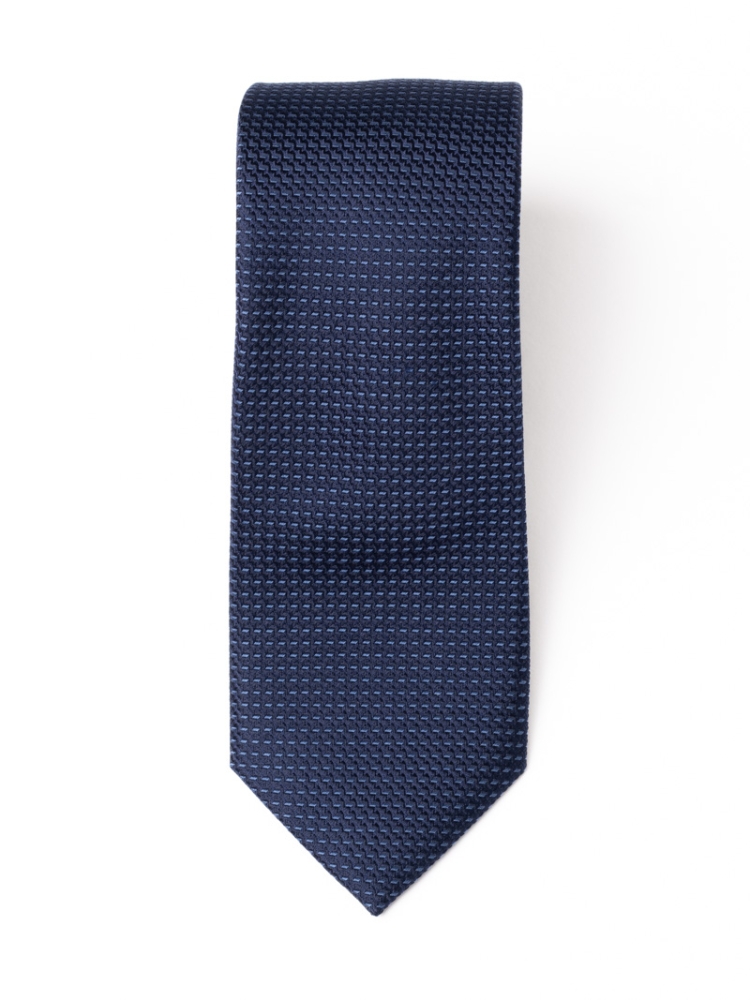 Cravatta uomo in seta caratterizzata da un disegno operato bicolore, disponibile nelle varianti colore blu-blu chiaro, blu-bordeaux e blu-tabacco.