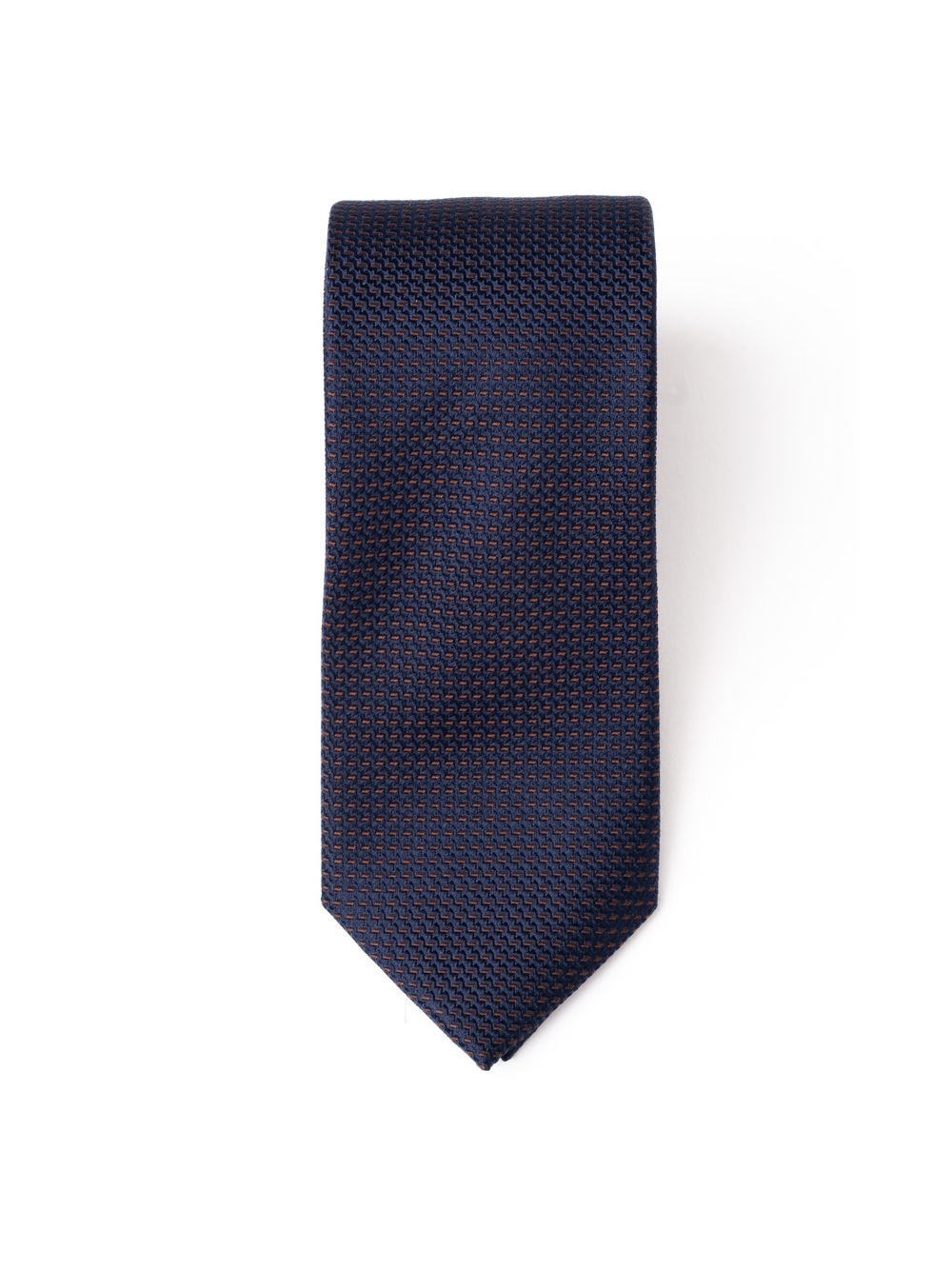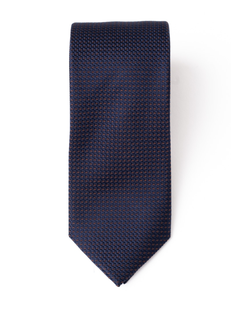 Cravatta uomo in seta caratterizzata da un disegno operato bicolore, disponibile nelle varianti colore blu-blu chiaro, blu-bordeaux e blu-tabacco.