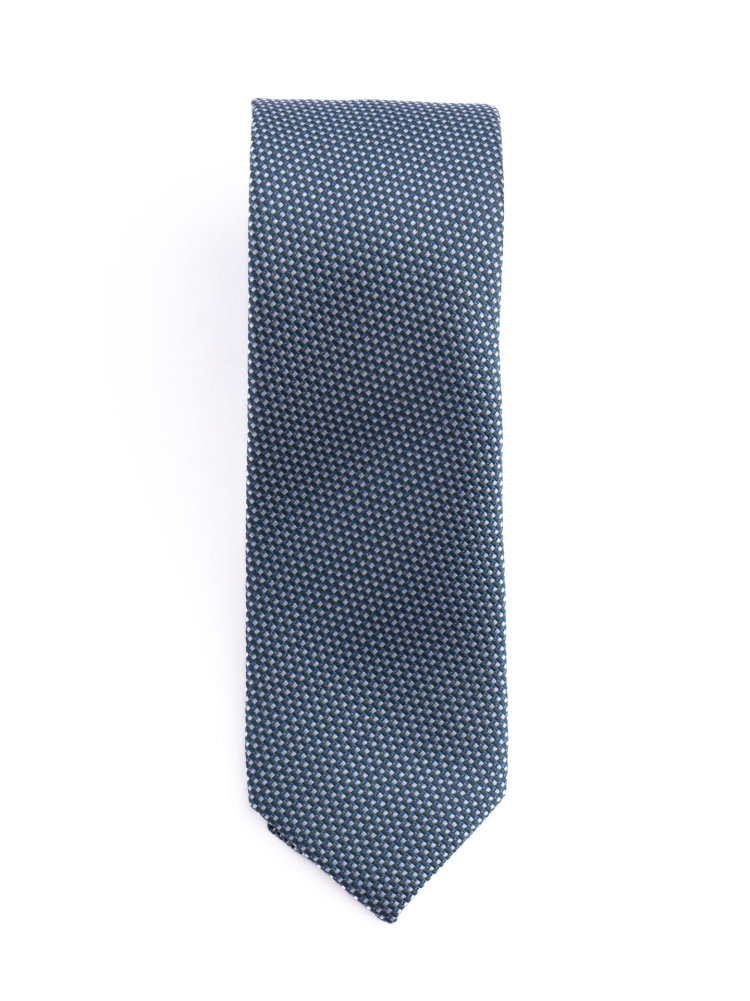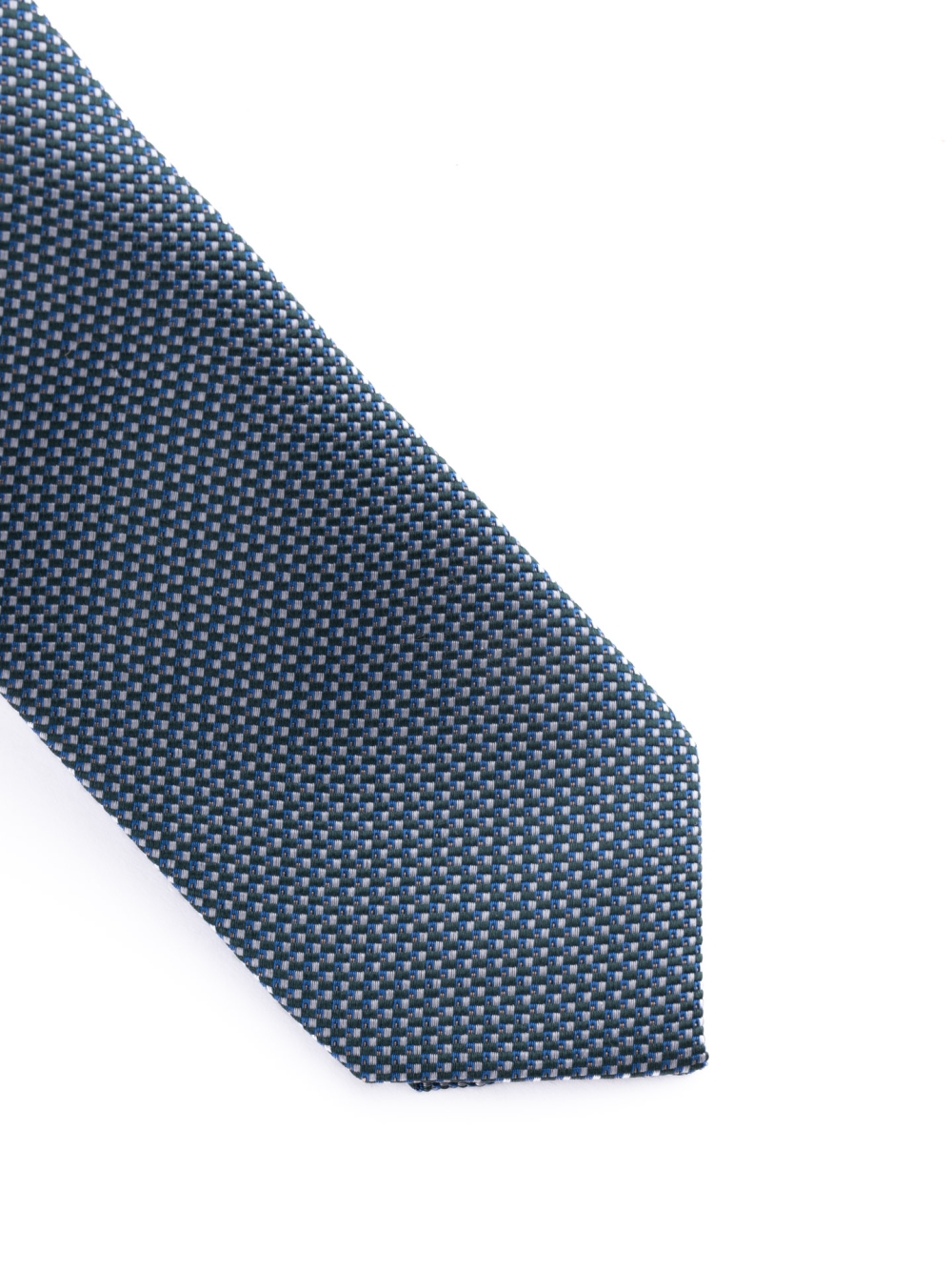 Cravatta uomo in seta armaturata a tre colori, blu, azzurro e bianco.