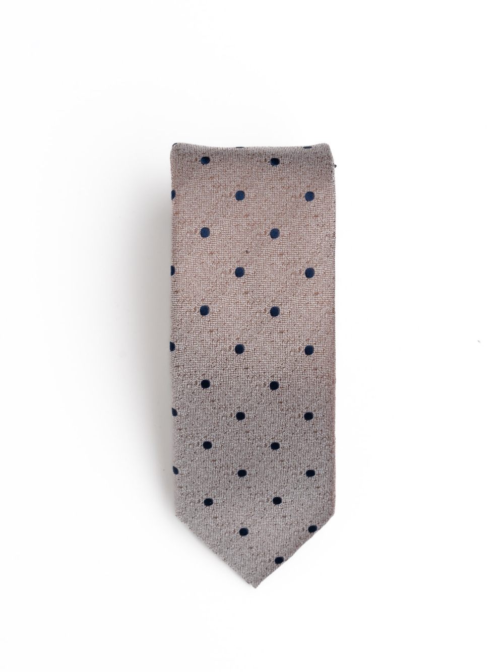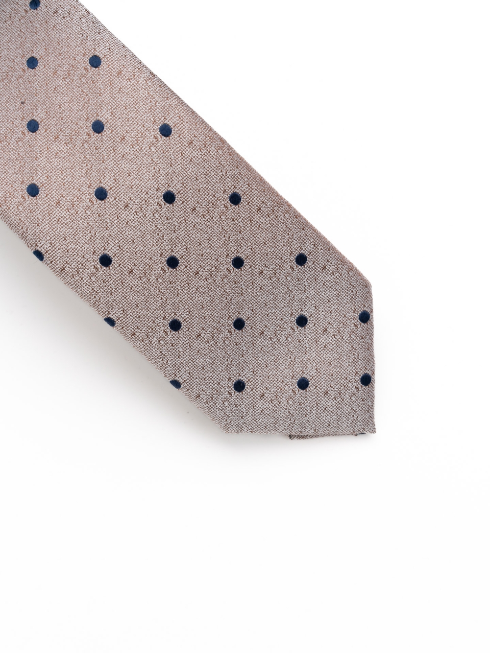 Cravatta in pura seta con motivo a pois su base melange, ideale per cerimonie ed eventi formali.