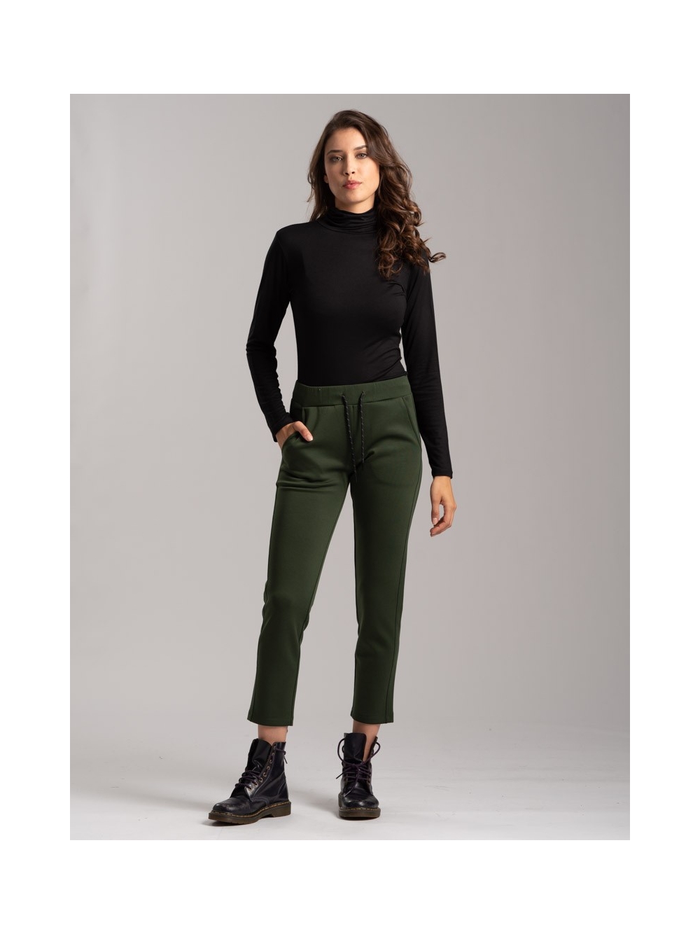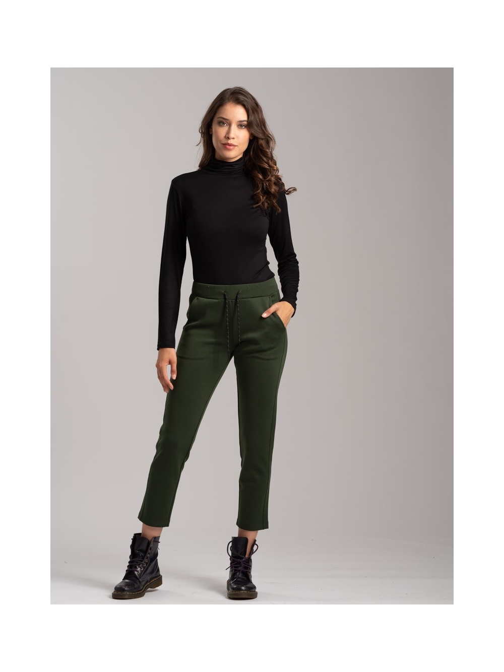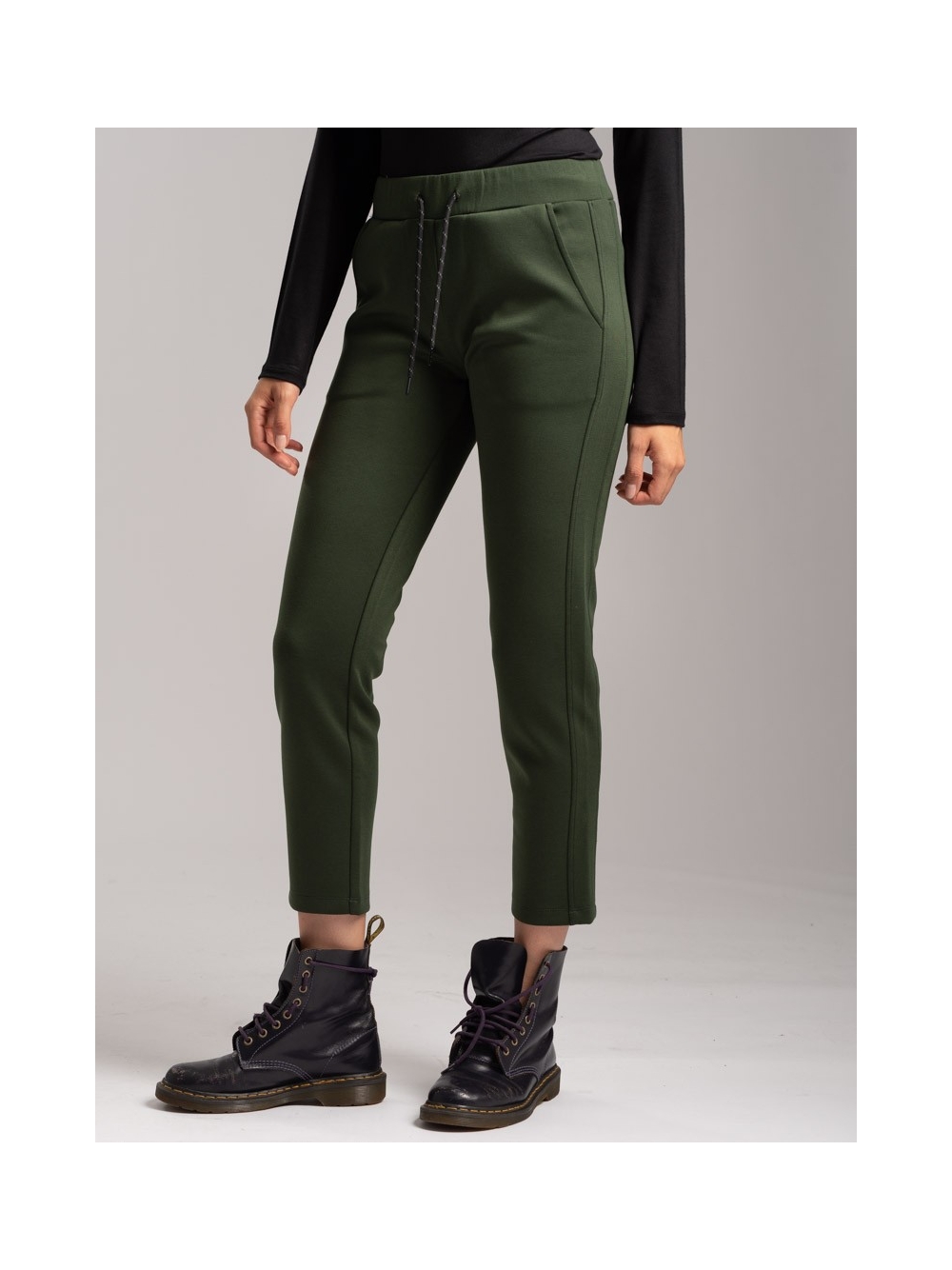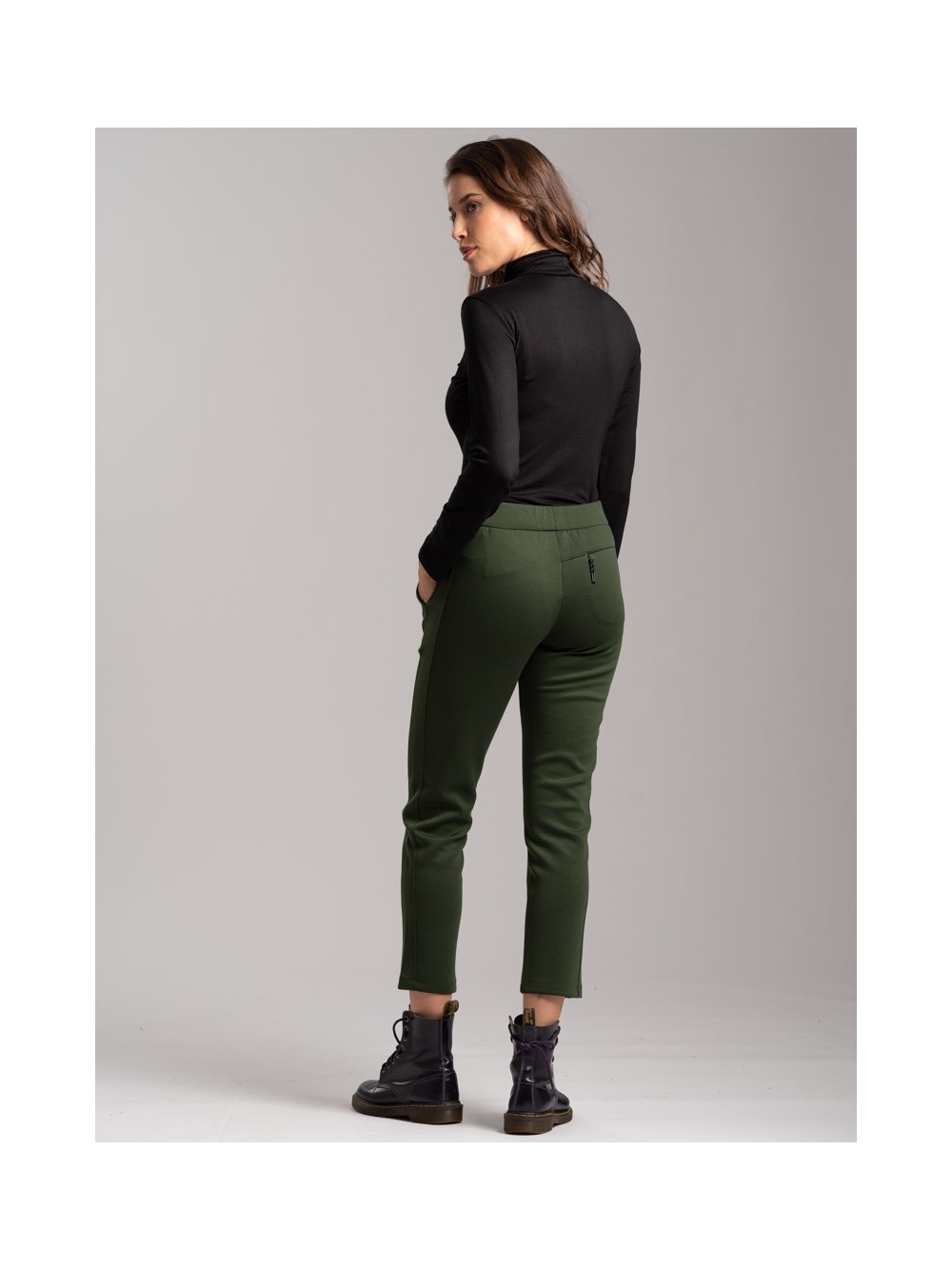 Pantalone donna realizzato intessuto tecnico (Scuba) bicolore con zip invisibili, nascoste nei tagli ergonomici dei capi